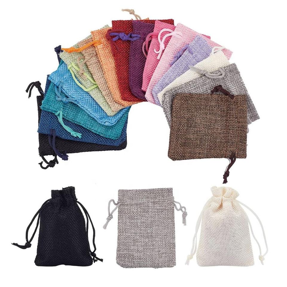 Sacchetto in Lino Rettangolare Lavabile di Alta Qualità per Gioielli con Cordoncino per Confezioni Regalo Natalizie con Stampa Logo Personalizzata 9*12cm