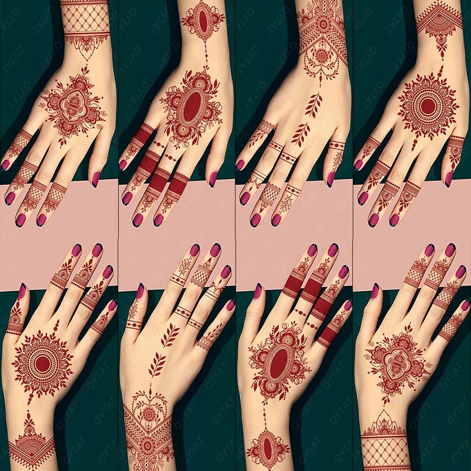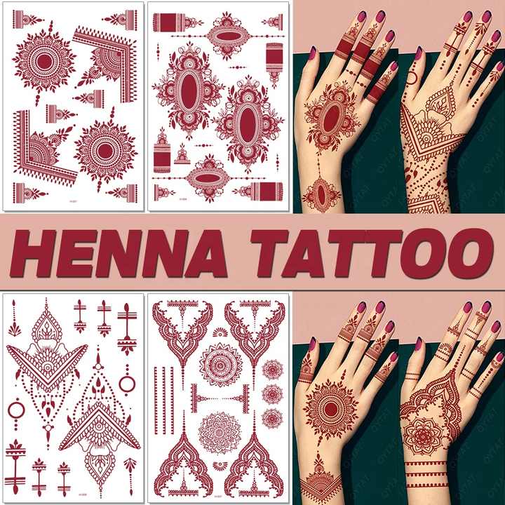 Di alta qualità Waterproof Body Art Mehndi Mandala rosso marrone marrone marrone indiano hennè tatuaggio adesivi personalizzati