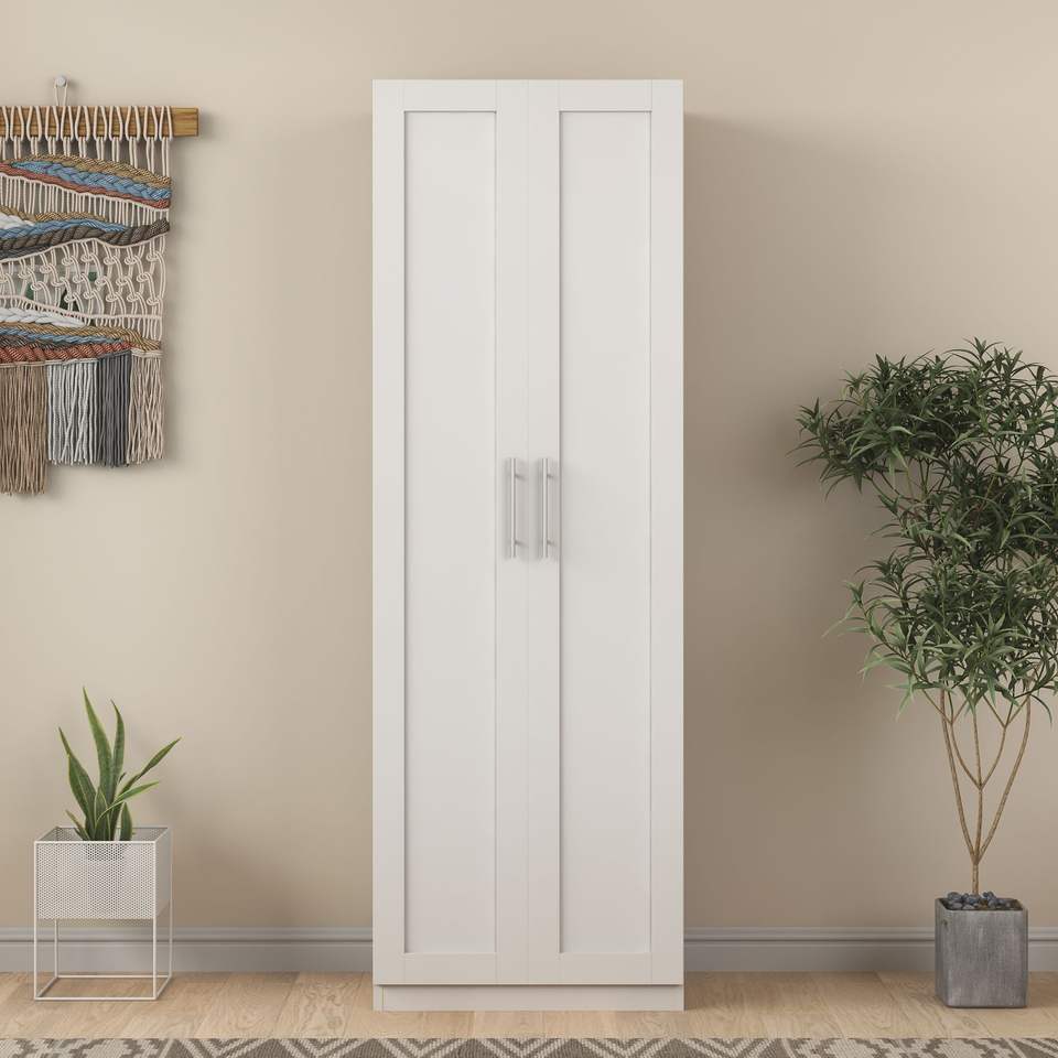 Armadio da Cucina Bianco di Alta Qualità a 2 Ante con 3 Divisori e 4 Spazi di Stoccaggio Separati, Design Elegante