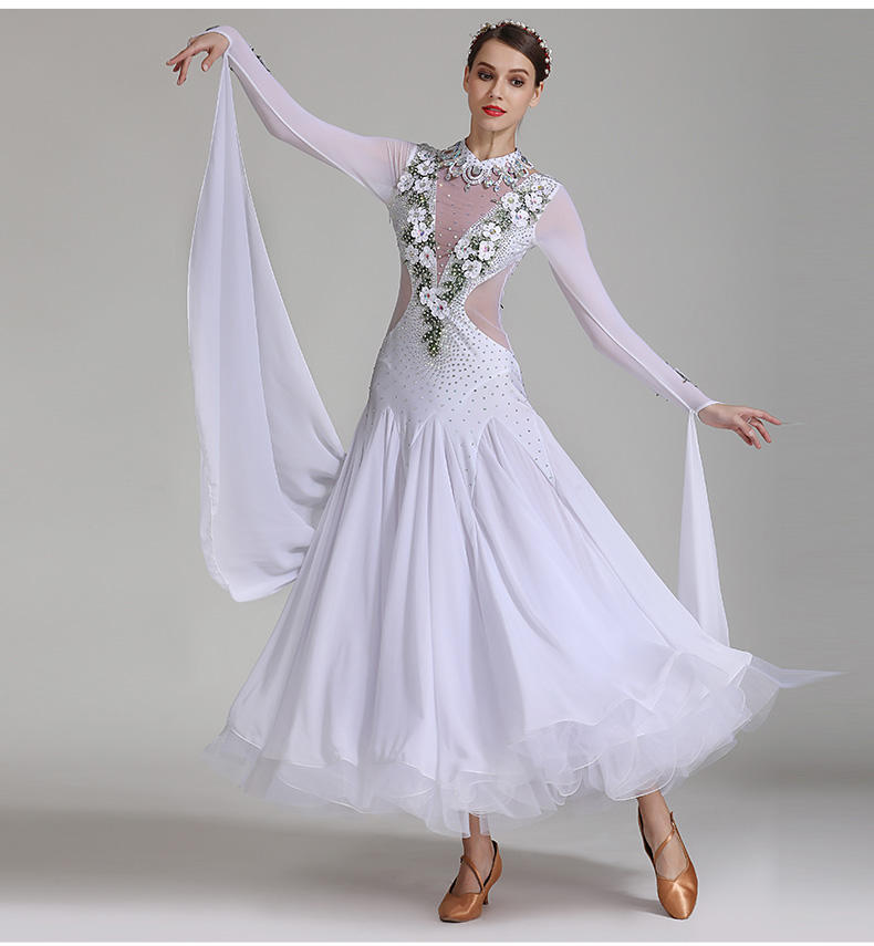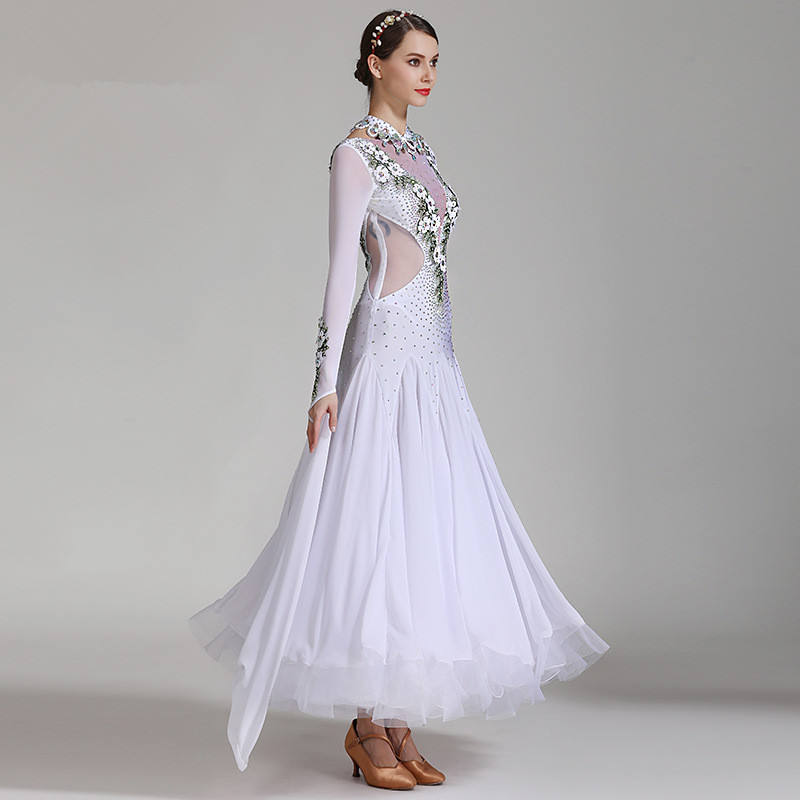 Abito da Ballo da Sala di Alta Qualità Bianco Standard Internazionale da Competizione per Donne