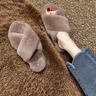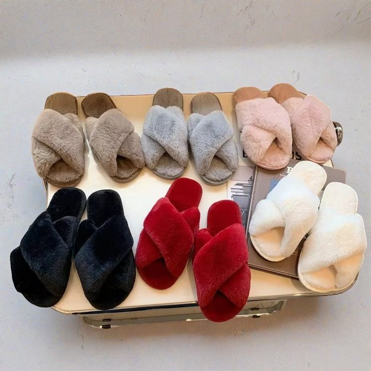 Di alta qualità all'ingrosso cinturino incrociato Tpr Sole inverno soffice pantofola pelosa per interni peluche pelliccia sintetica pantofole per la casa per le donne da donna