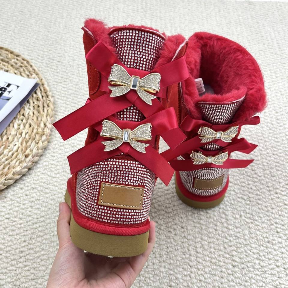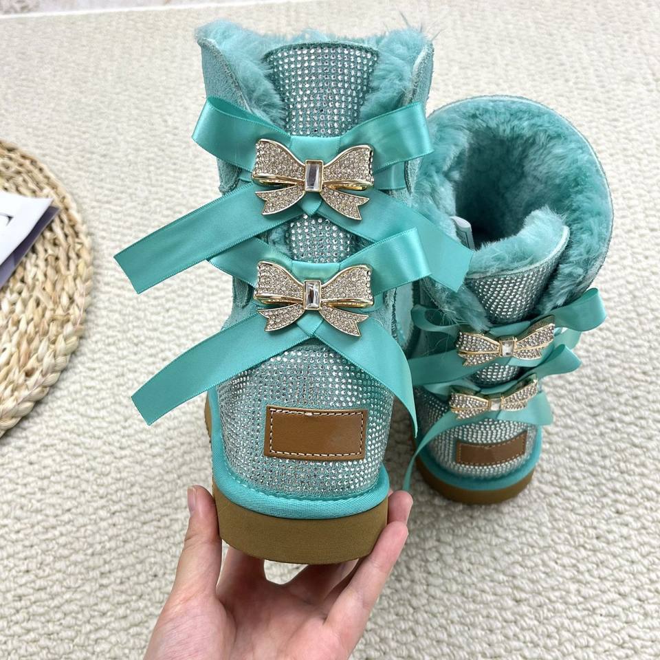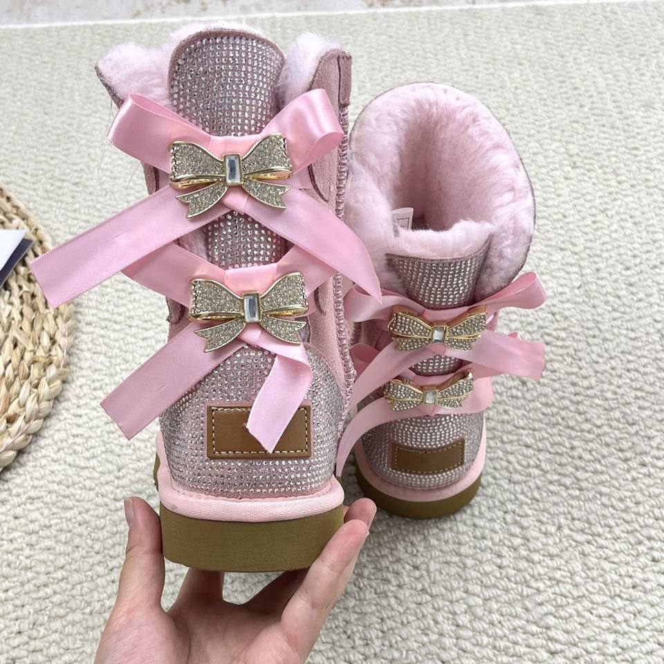High Quality Wholesale Fashion Ugs Style Design Winter Warm Women's Rhinestone Bling Snow Boots With Bow Snow Boots with Logo