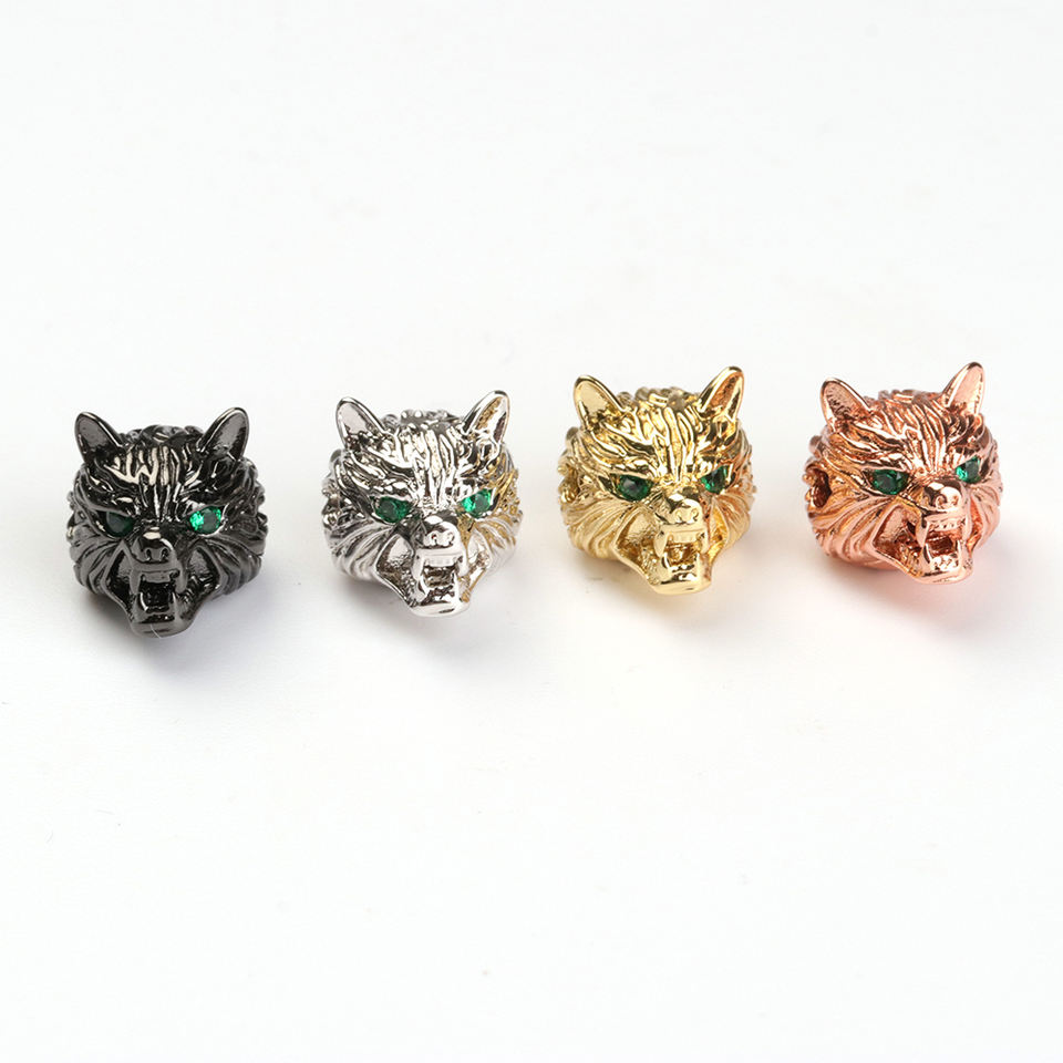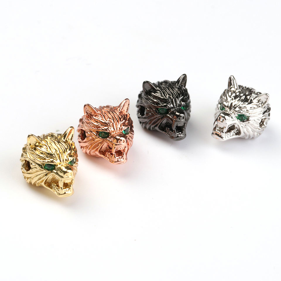 High Quality Wolf Head Beads Green Eyes Animal Jewelry Fashion Cubic Zirconia Beads for Jewelry Making