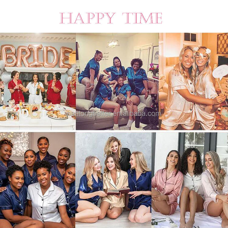 High Quality Women Elegant Luxury Silky Satin Pajama Sleepwear Button Down Pyjamas Loungewear Nightgown Short Sleeve with Pocket