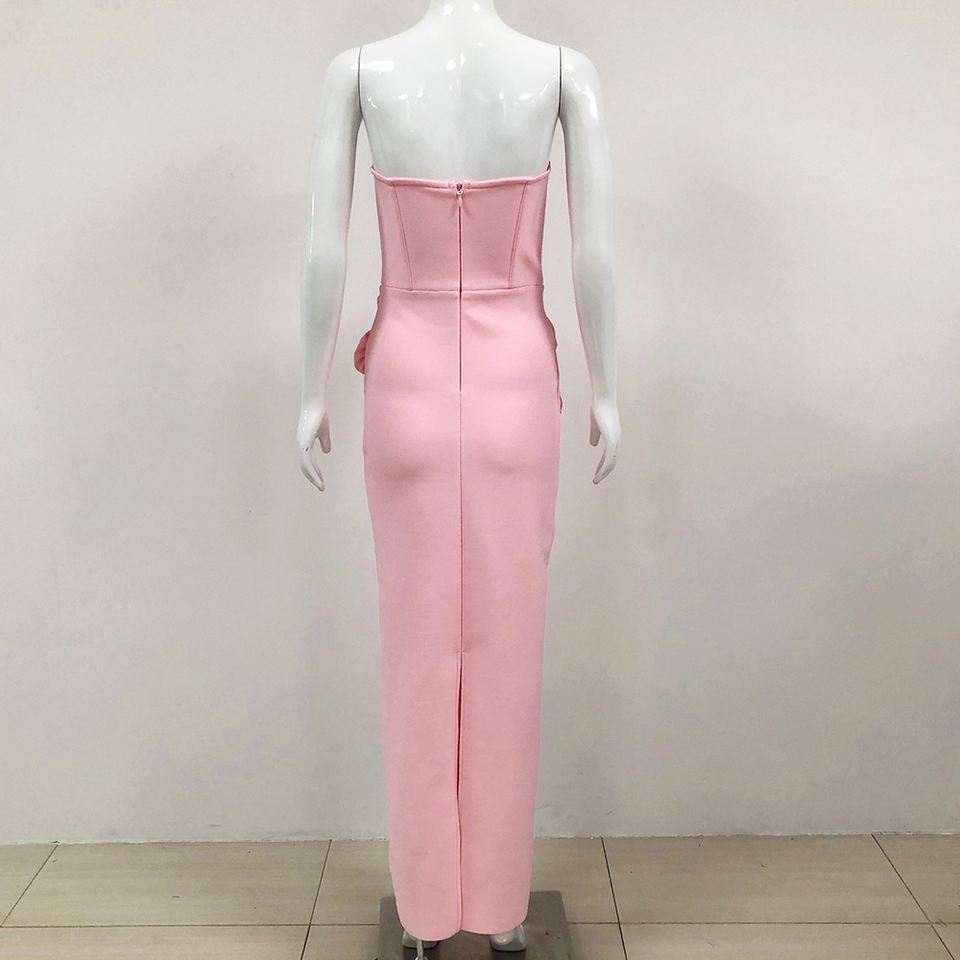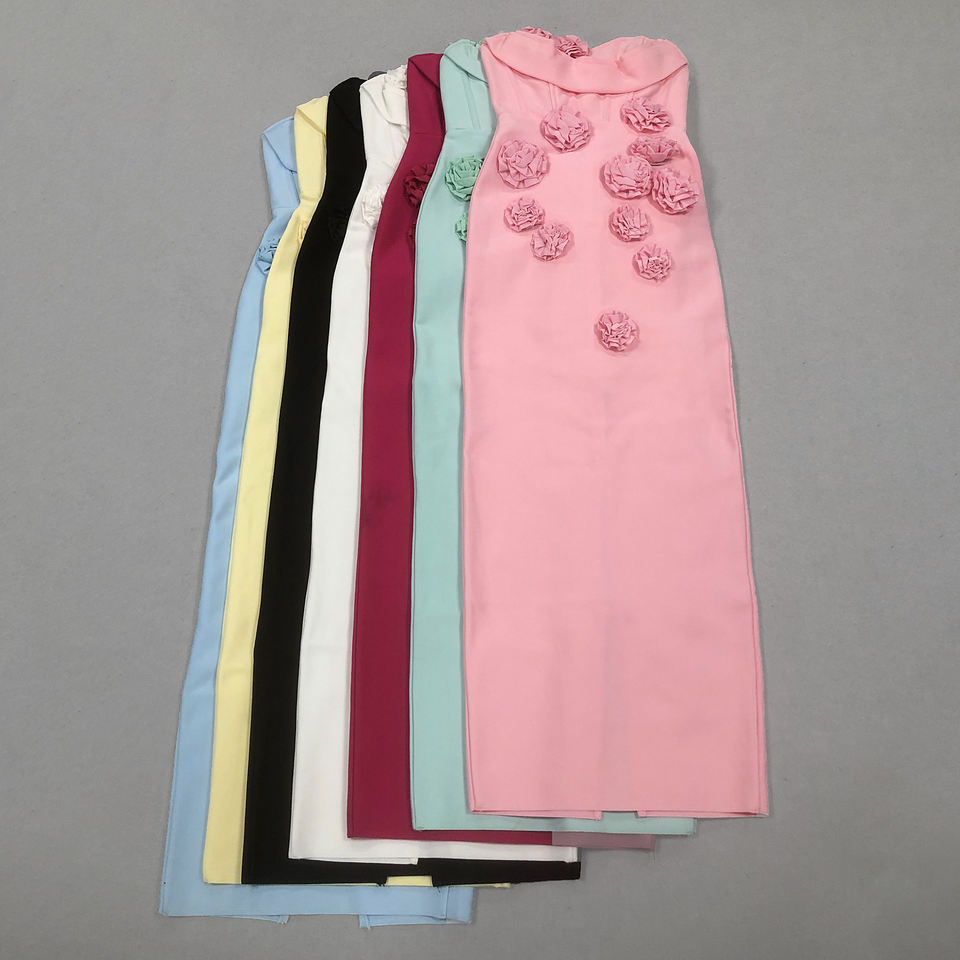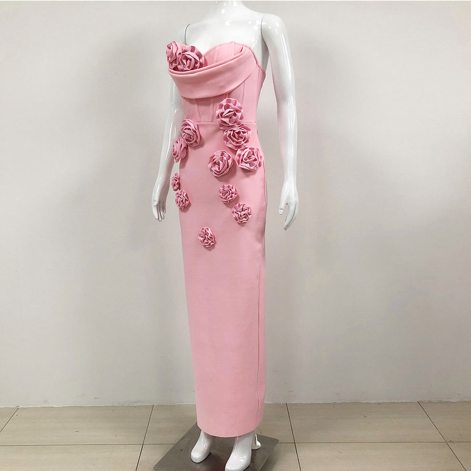 High Quality Women Party Dress Vestidos Elegantes 3D Rose Flower Off-The-Shoulder Pink Elegant Long Bodycon Bandage Dress