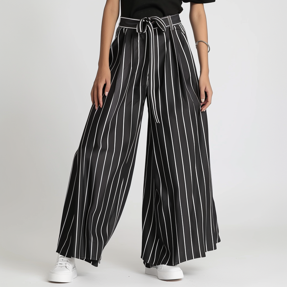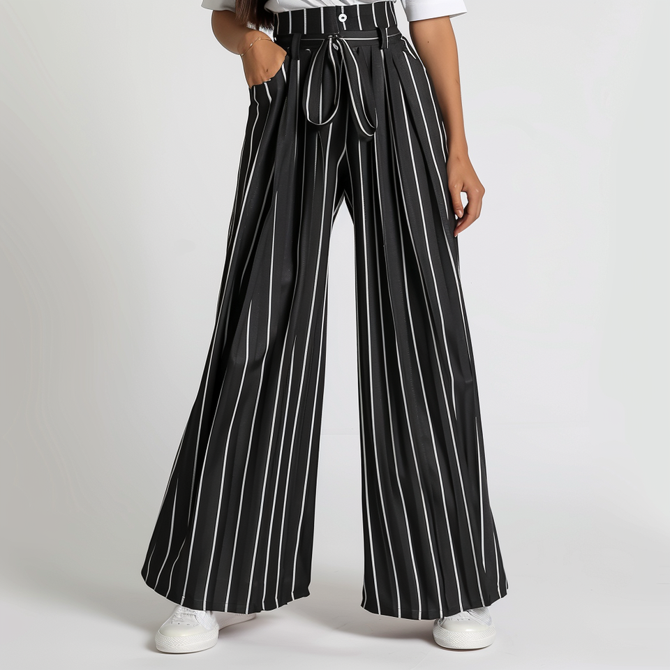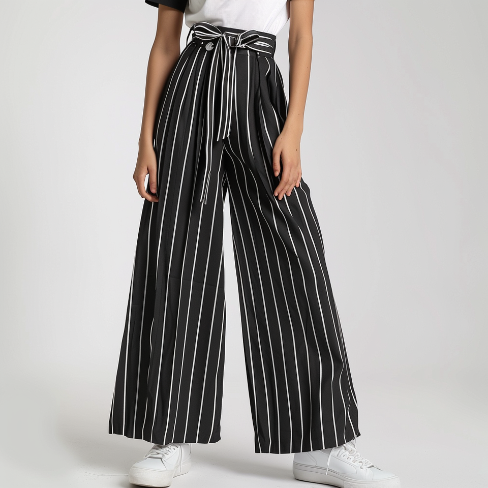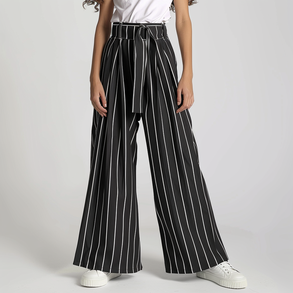 High Quality Women's Casual Lightweight Trousers Women's Streetwear High Waist White Black Striped Versatile Wide Leg Trousers