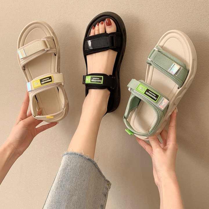 Sandali piatti con piattaforma comoda da donna di alta qualità con chiusura in Velcro morbidi Sole abbigliamento da spiaggia da esterno per la primavera estate