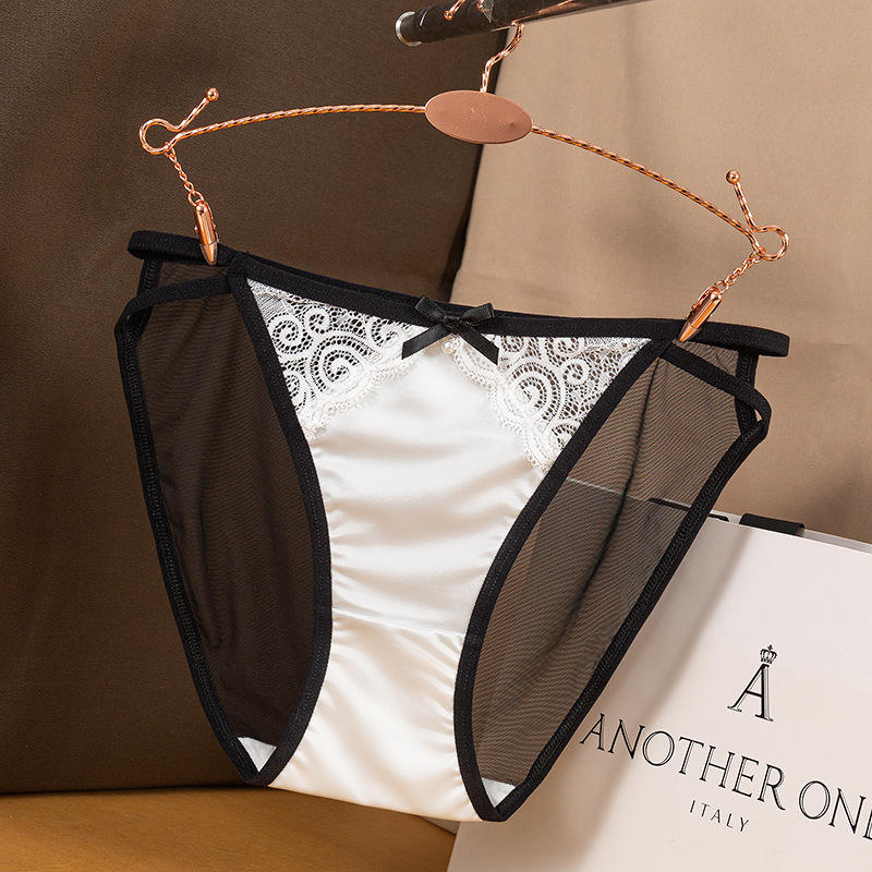 High Quality Women's Sexy Oily Lace Panties Low-Rise Thin Mesh Waist Solid Pattern Sultry Briefs Contrast Color Bikini