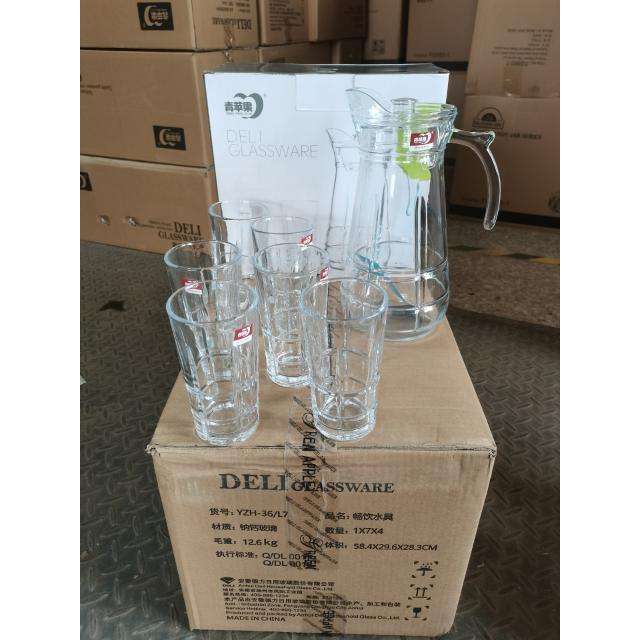High Quality YZH 36L7 Deli Glassware Set Crystal Clear Tea Cups & Saucers and Pitcher for Home Use Wholesale