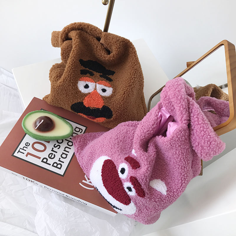 Borse a tracolla giovani ragazze di alta qualità simpatiche animali cartoni animati con decorazione ricamata fodera in cotone di peluche