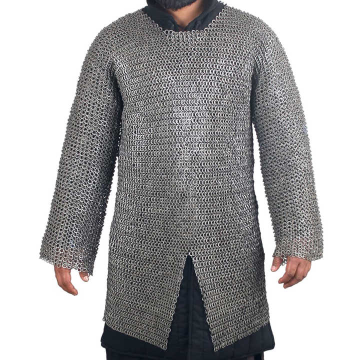 Camicia di alta qualità Zafs ZS0824 fatta a mano medievale Hauberk maglia lunga lunga maniche lunghe armatura in metallo Cosplay rievocazione storica