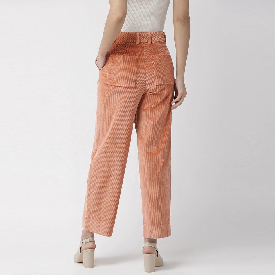 Di alta qualità di colore rosa arancione gamba dritta rilassato casuali delle donne pantaloni di velluto a coste