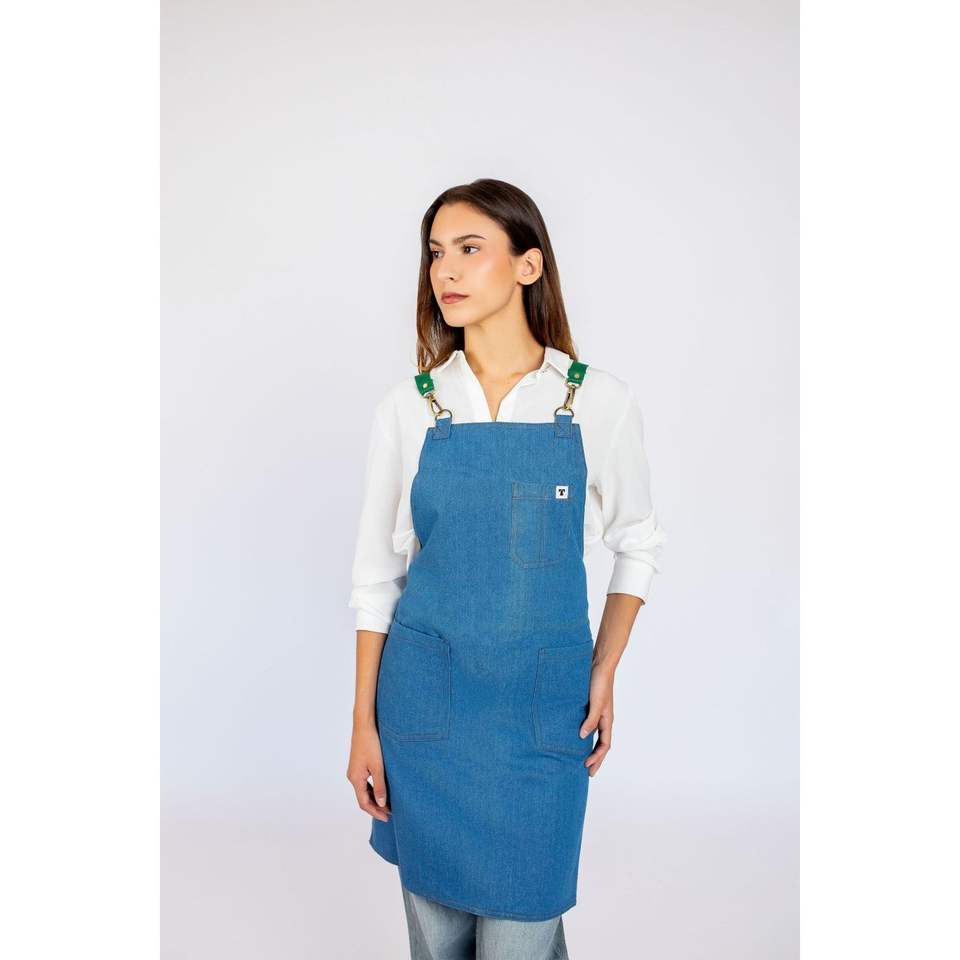 Grembiule da Cowboy in Denim Verde Stonewashed Senza Maniche con Bretelle per Cucina, Pulizie, Giardino, Protezione, Matrimoni e Feste di Natale