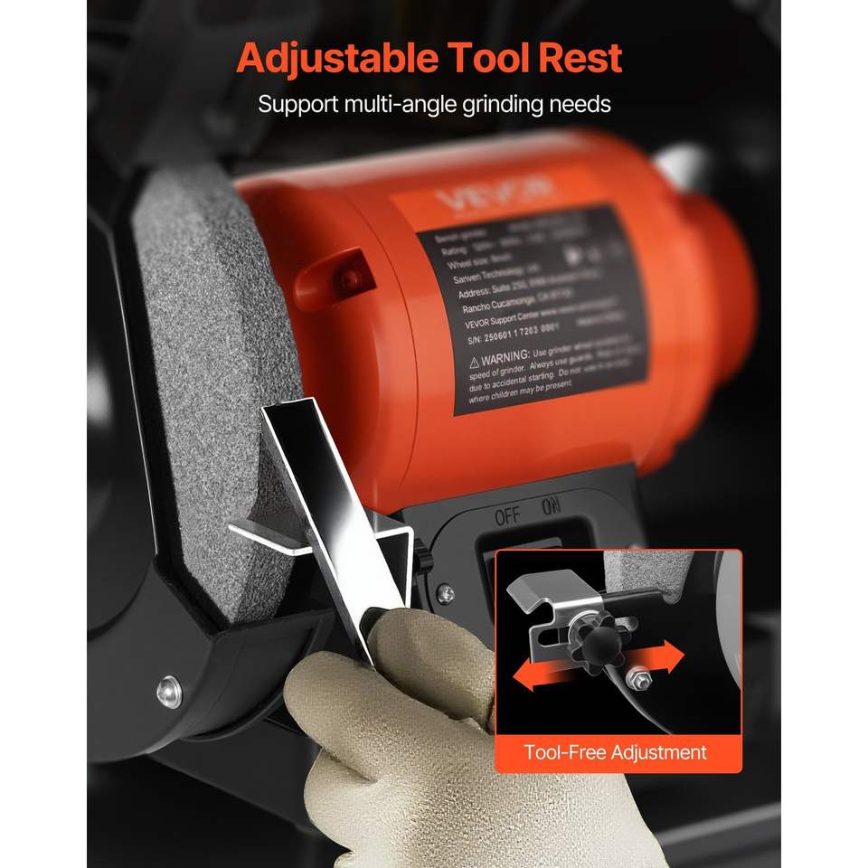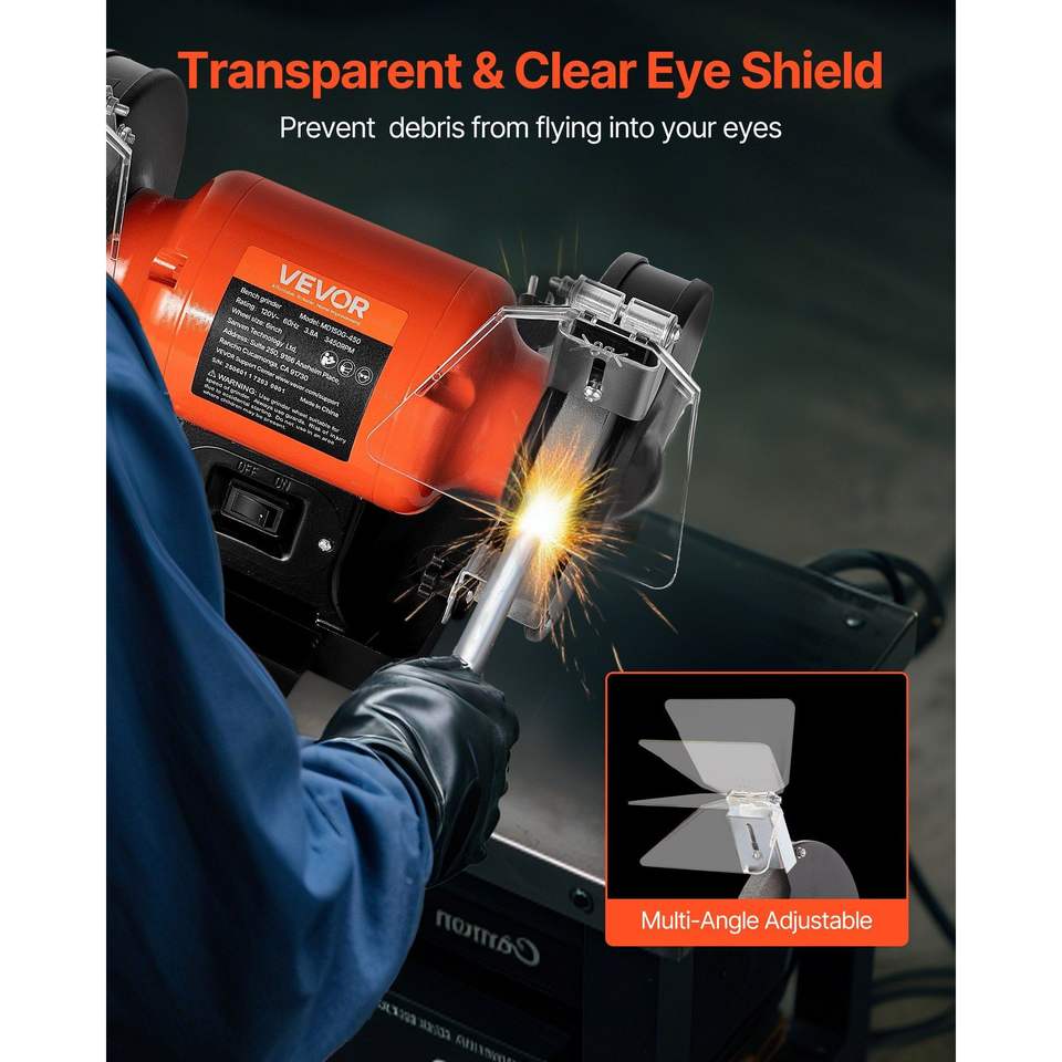 Smerigliatrice da banco monovelocità ad alta velocità da 6 pollici 3450 RPM 450W 3.8A con motore a induzione, mola da 36/60 grana, mola da 60 grana per