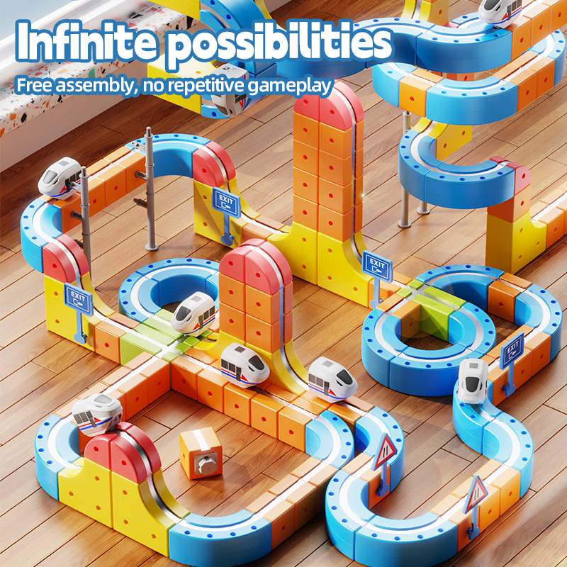Treno Elettrico ad Alta Velocità, Giocattolo Interattivo DIY con Pista in Plastica per Bambini, Set Educativo di Blocchi con Vagone Magico