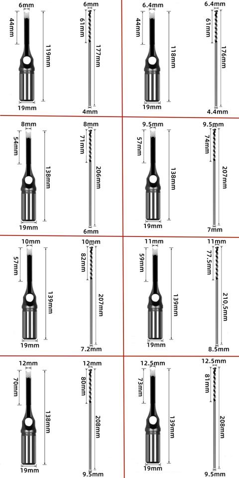 Set di scalpello per mortasatura in carburo di acciaio ad alta velocità da 6 ~ 12.7mm di diametro quadrate per utensili elettrici CNC per la lavorazione del legno