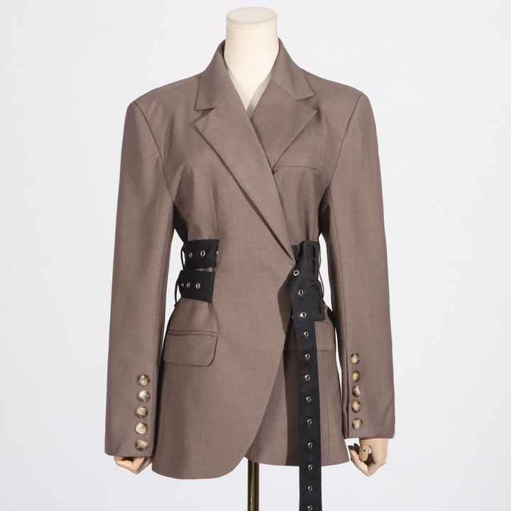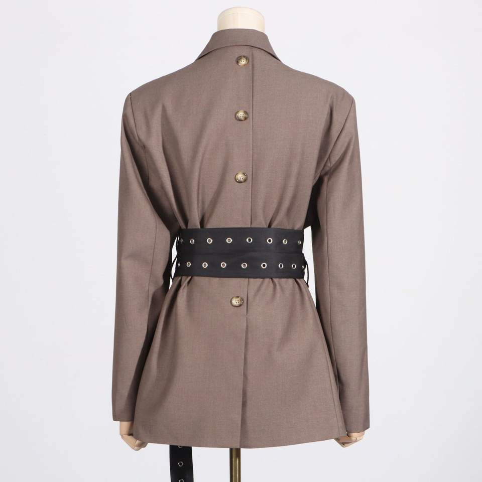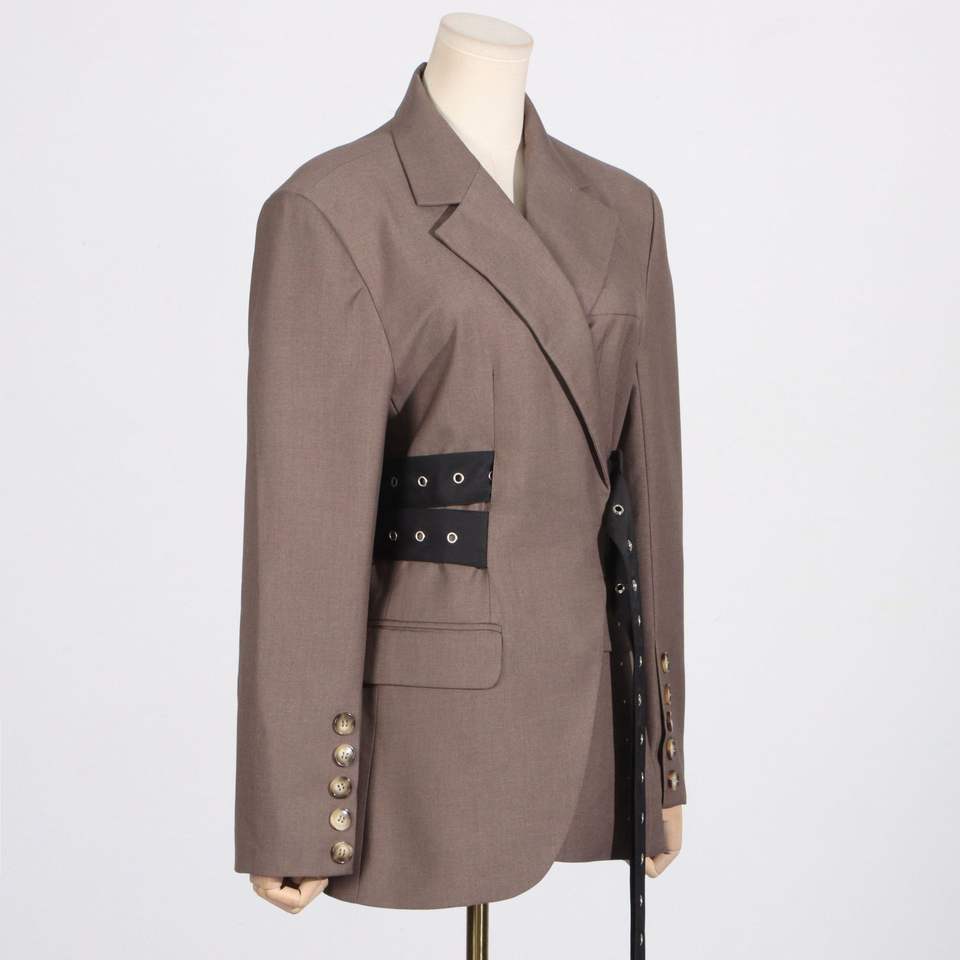 Blazer da Donna alla Moda con Design Personalizzato, Tessuto Intrecciato, Lacci in Vita e Dettagli in Pizzo, Traspirante e Modellante