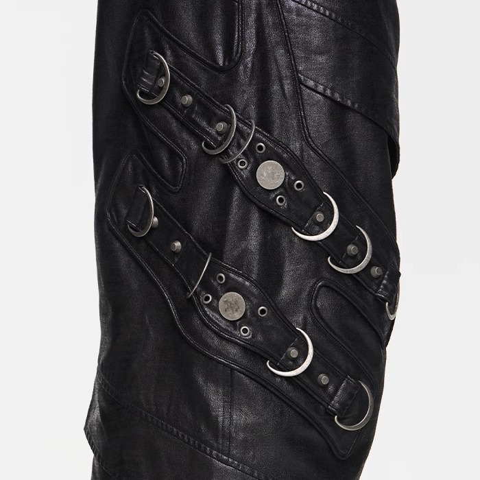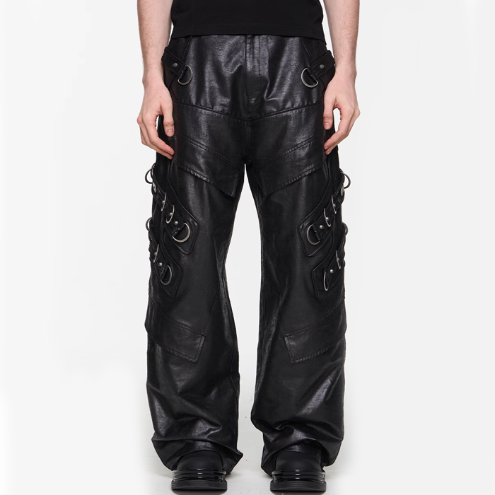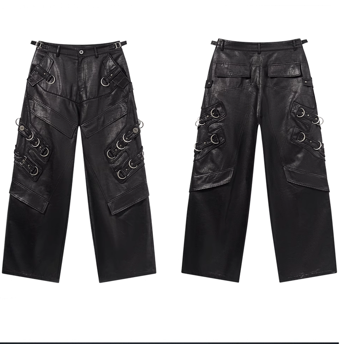Pantaloni Cargo da uomo con cinturino regolabile in ecopelle a gamba larga Multi-metallo in metallo ricamato pantaloni motorizzati Street Style