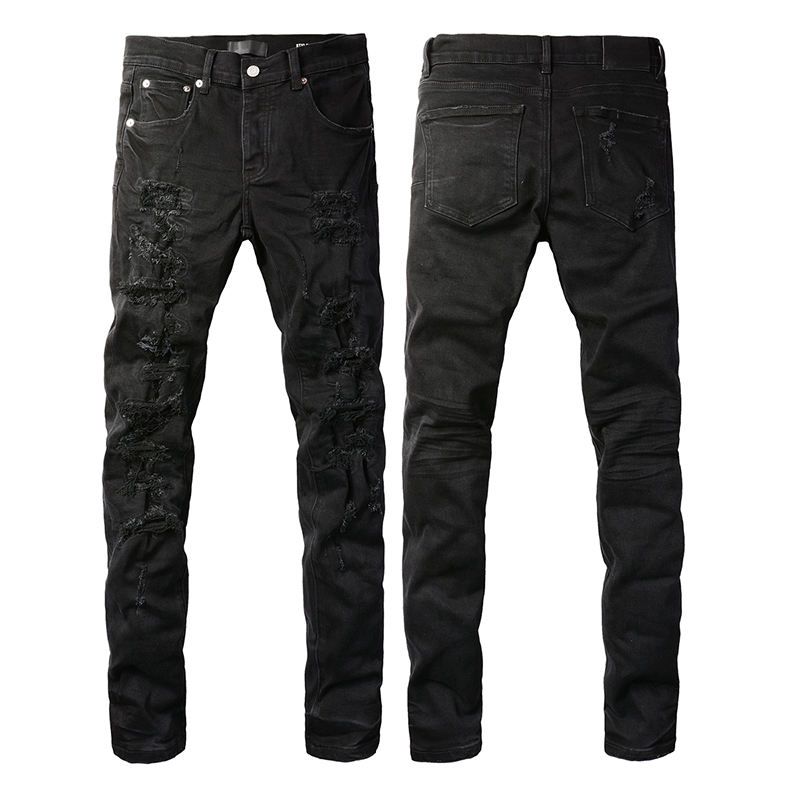 Jeans da Uomo High Street 100% Cotone, Vestibilità Slim, Gamba Dritta, Vita Media, Traspiranti, Strappati, Effetto Usurato, con Bottoni, Vendita all'Ingrosso