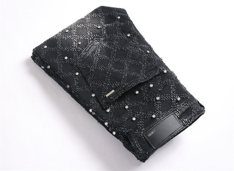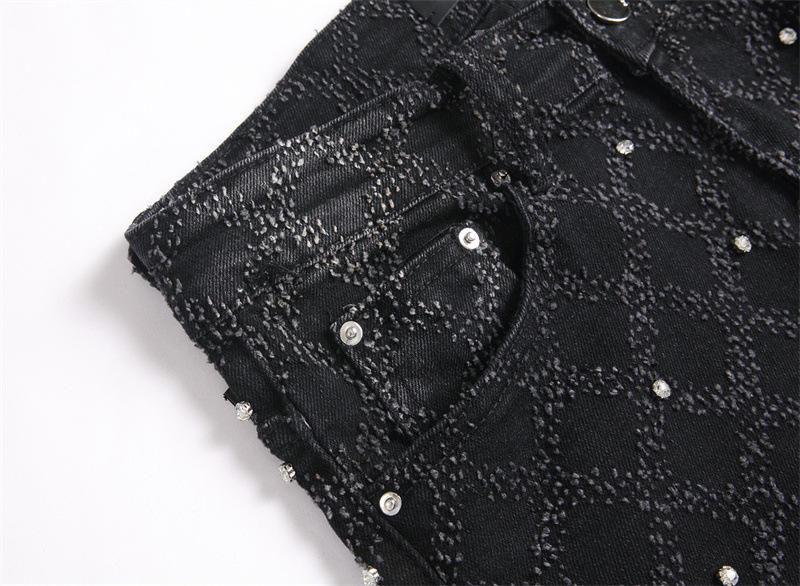 Jeans da Uomo High Street Bootcut Fashion Effetto Vissuto con Ricamo a Diamante Elasticizzati Skinny Strappati Impilati a Zampa