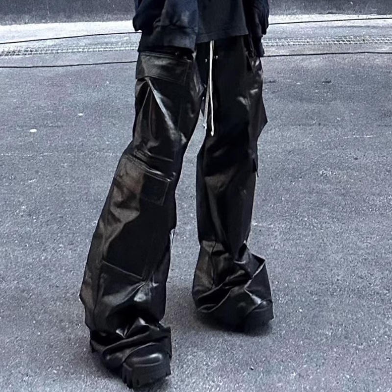 Pantaloni Casual a gamba larga da uomo alla moda pantaloni in pelle sintetica con chiusura a cerniera a vita media ampia taglia normale XL