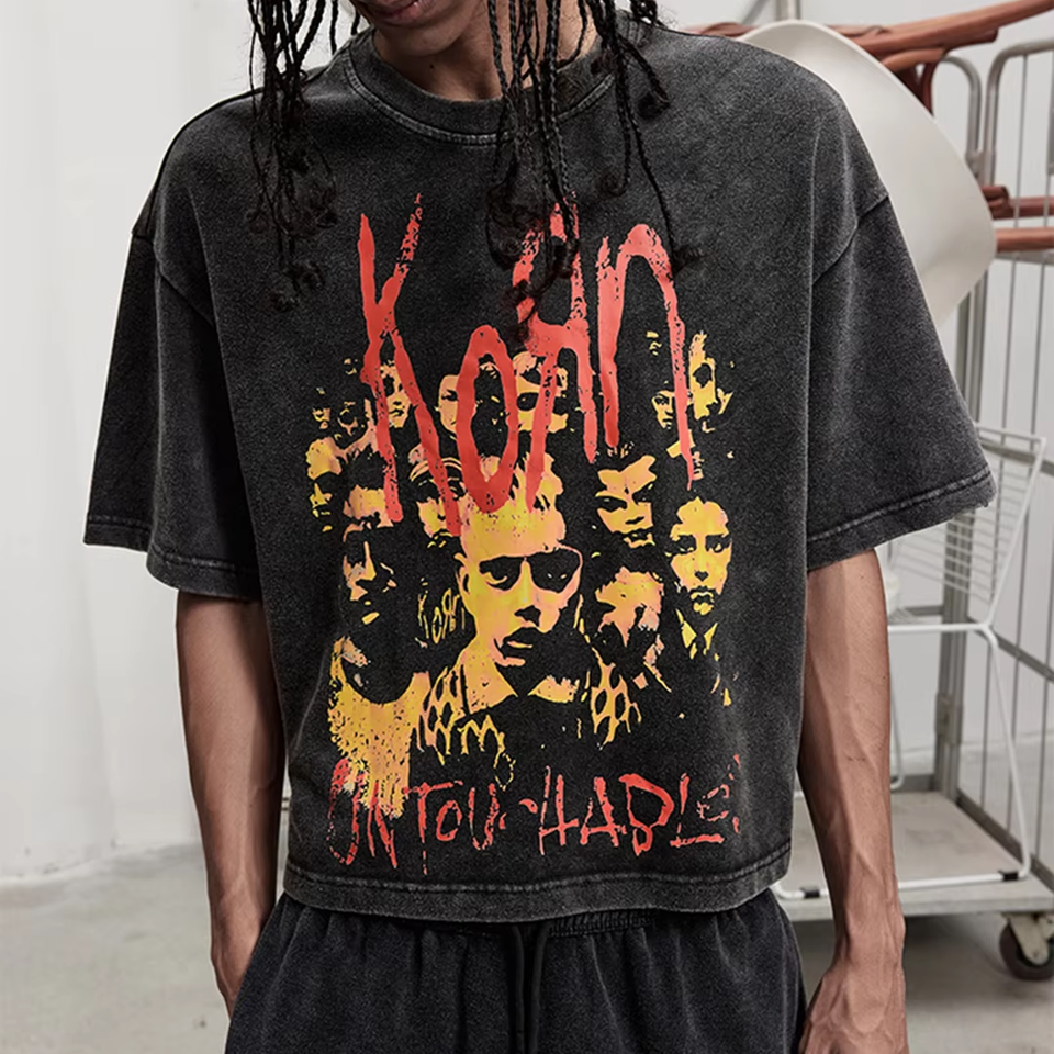 High Street Vintage Retro Short Sleeve Rock Band Theme Print Short Sleeve Mens T Shirt