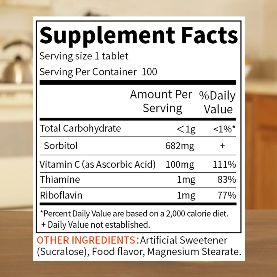 Compresse masticabili di vitamina C ad alta potenza - Gusto naturale di arancia, supporto per il sistema immunitario e antiossidante