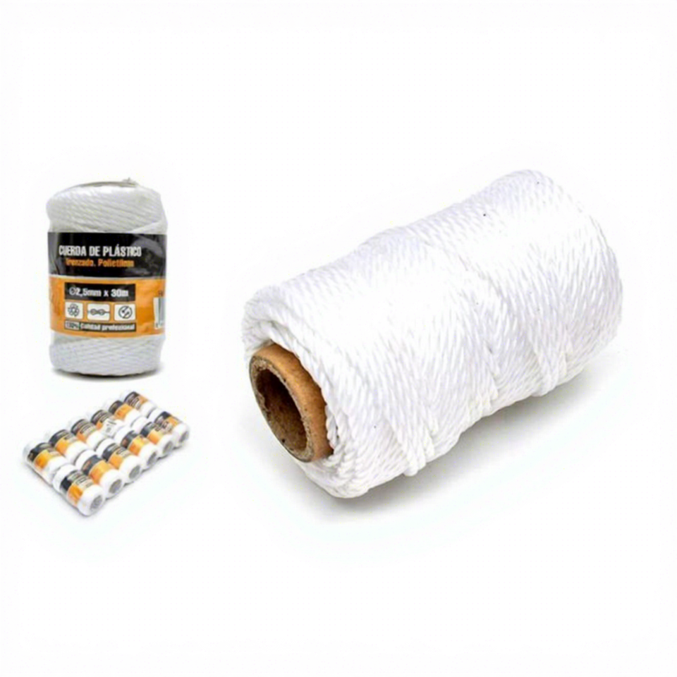 High Strength White PE Woven Twisted Rope 2.5*30M Various Accessories Roll Coil Packed 3 Strand Twisted Structure Model