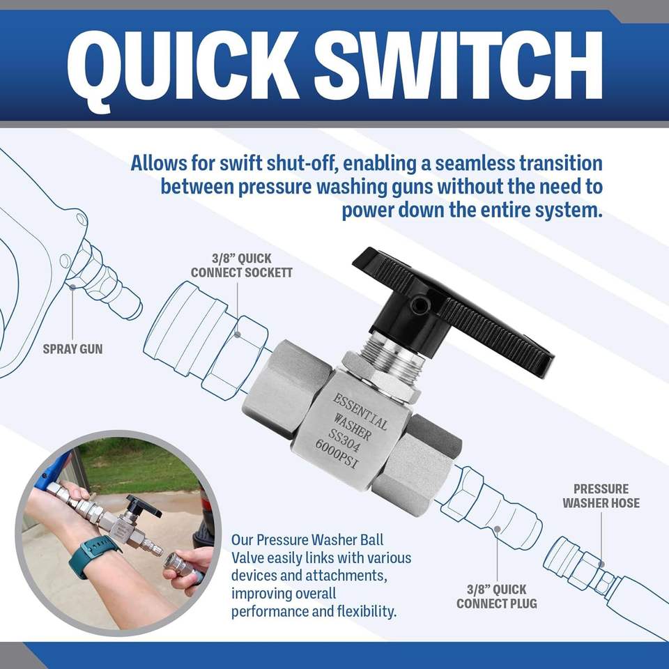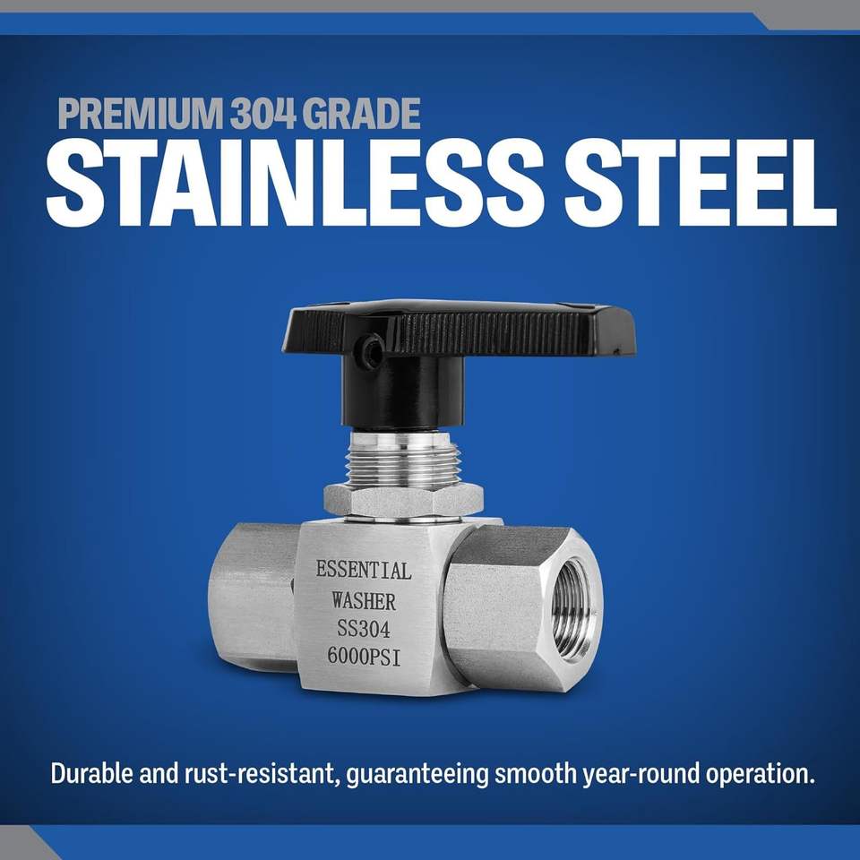 Valvola a Sfera per Idropulitrice ad Alta Pressione 6000 PSI in Acciaio Inox 3/8'' Femmina BSP - Valvola di Chiusura