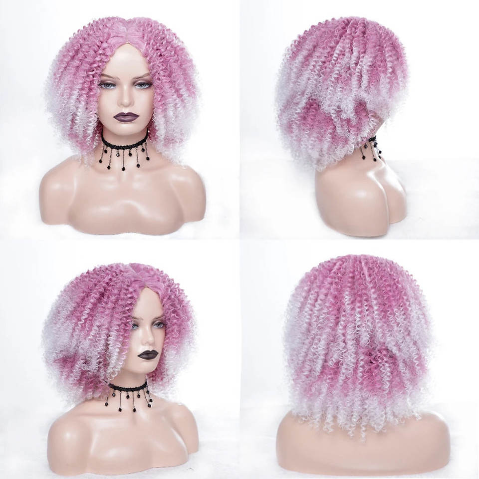 High Temperature Fiber Synthetic Kinky Curly Wig Glueless Short Wig with Small Cap Long Length Kinky Curl Style High Quality