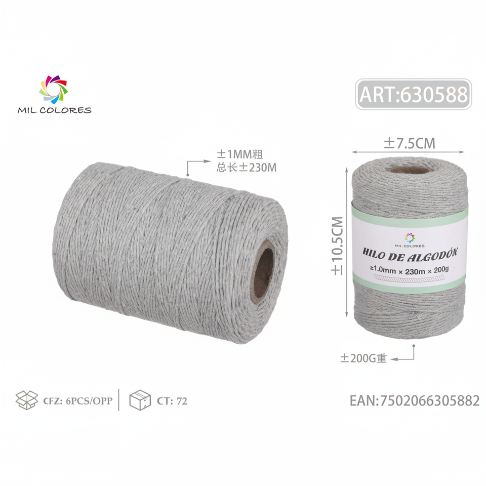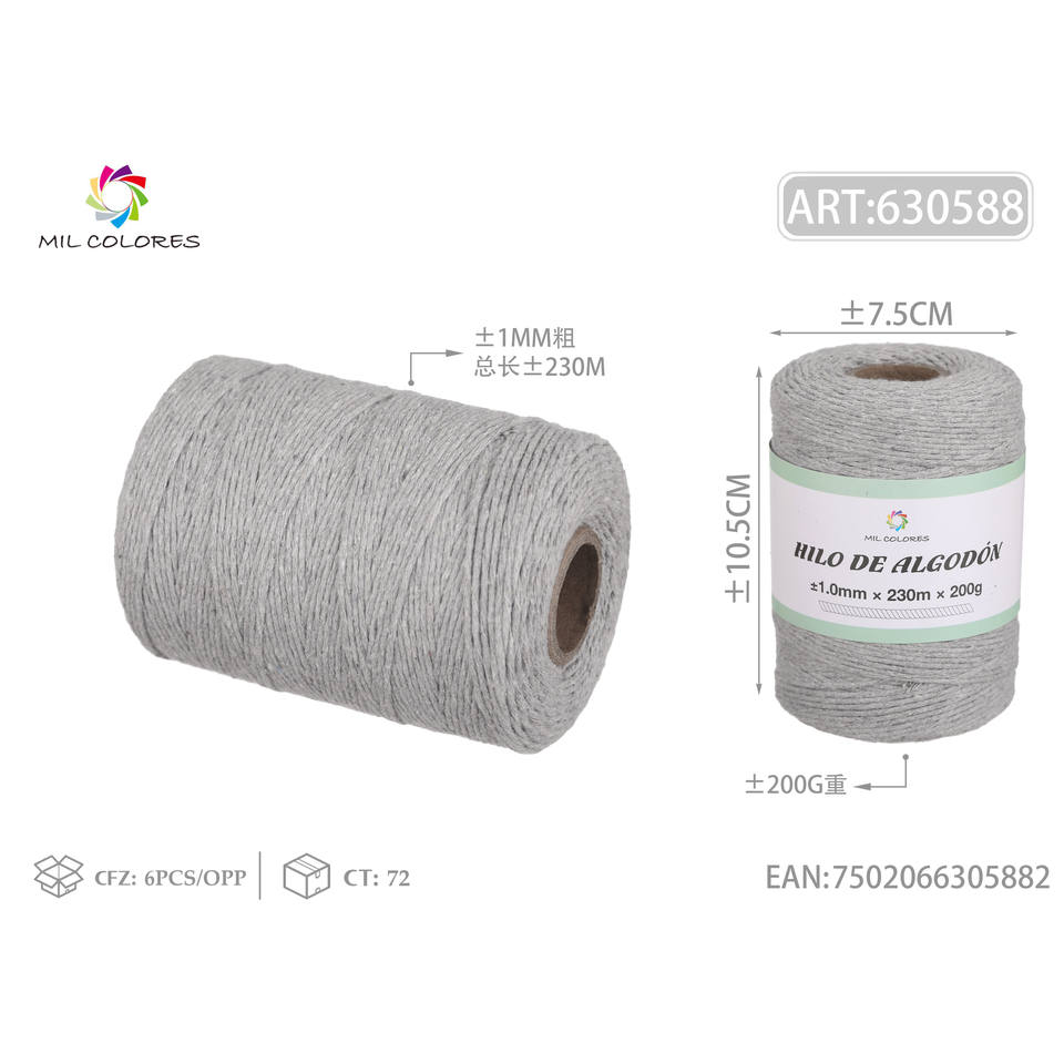 High Tenacity 1.0mm*200g*230m 16# Single Color Cotton Thread Invisible for Garments Dyed Pattern Free Sample Available