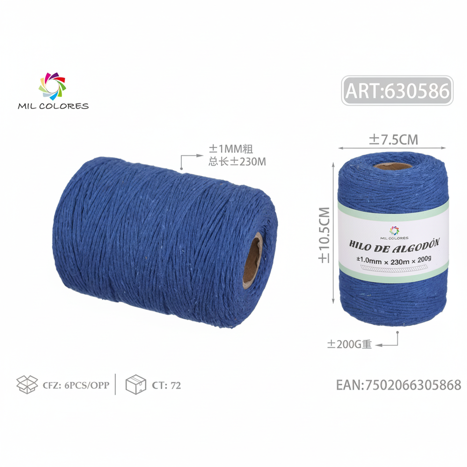High Tenacity 1.0mm*200g*230m 14# Single Color Cotton Polyester Sewing Threads Dyed for Garments Free Sample Available
