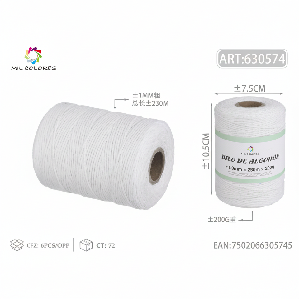 High Tenacity 1.0mm*200g*230m 2# Cotton Thread 100% Cotton and Polyester Dyed Pattern for Shoe Use Free Sample Available