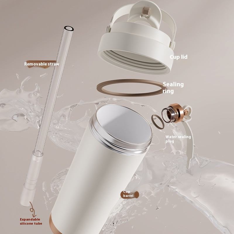 Ad alto valore di grande capacità rivestimento in ceramica Thermos portatile Double-face tazza di caffè paglia per studenti di sesso maschile viaggiatori