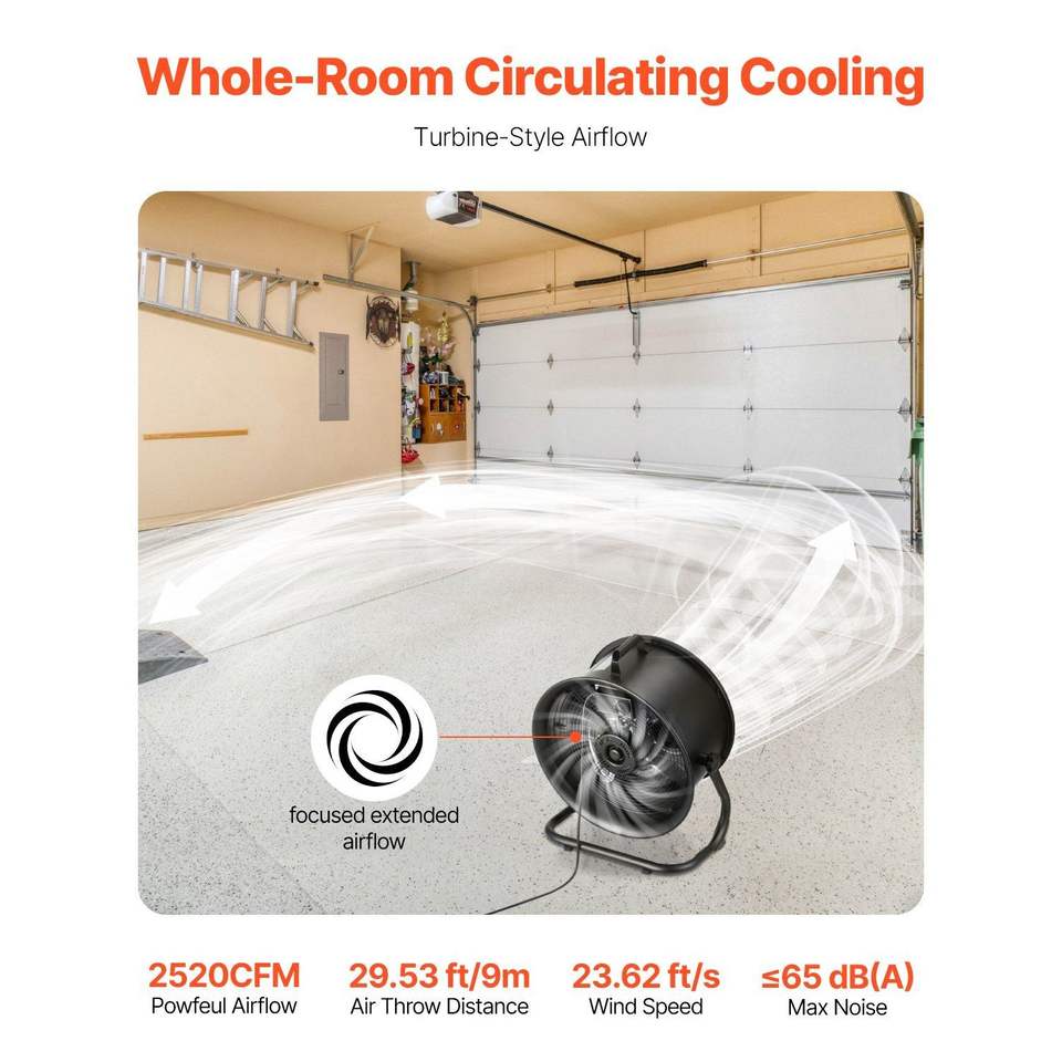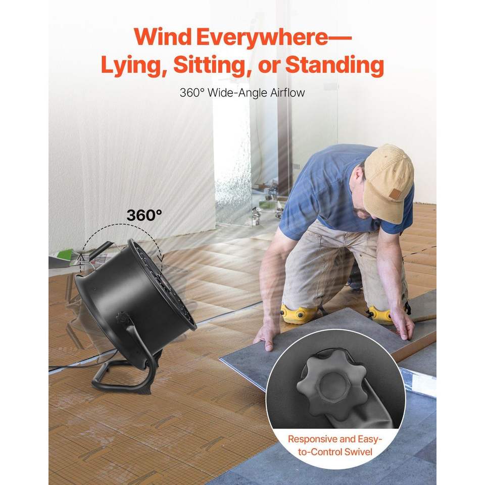 Ventilatore Industriale ad Alta Velocità da 14 Pollici con 3 Velocità, 2520 CFM, Inclinazione Regolabile a 360 Gradi, Flusso d'Aria 23,62 Ft/sec, Ventilatore da Pavimento per Impieghi Gravosi