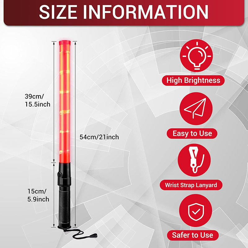 Bastone Luminoso LED ad Alta Visibilità per Traffico | Bastone di Segnalazione a Batteria da 54cm con 3 Modalità Lampeggianti per Controllo Parcheggi e Traffico