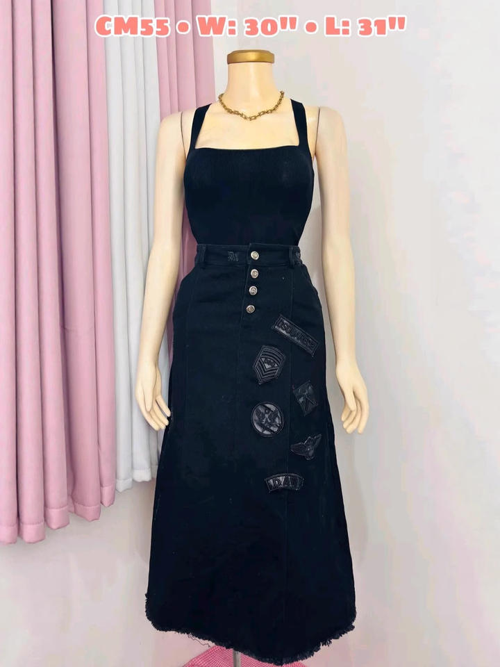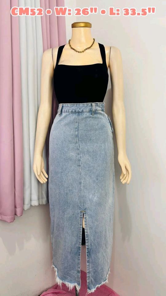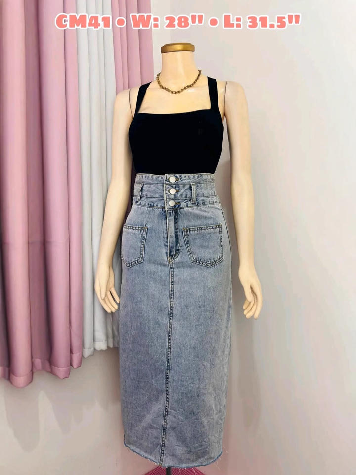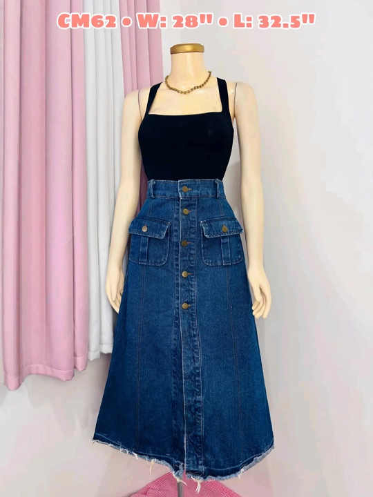 High Waist Casual Cargo Skirt Denim Pants with Button Front Washed Finish Solid Pattern-All Seasons Wholesale