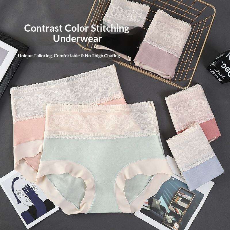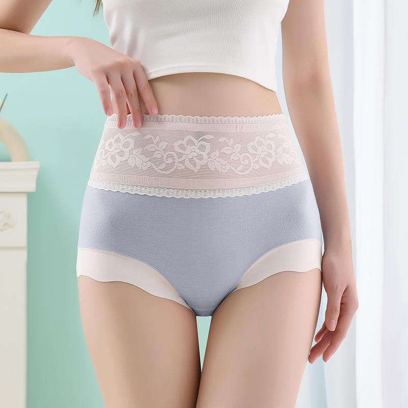 High-Waist Modal Underwear Breathable and Comfortable Stitched Design That Flattens the Abdomen Culottes Women's Lace Panties