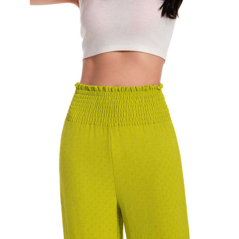 Pantaloni a Gamba Larga in Maglia Stropicciata a Vita Alta, Stile Casual, Leggeri, da Casa, con Vita Arricciata e Tessuto Traspirante