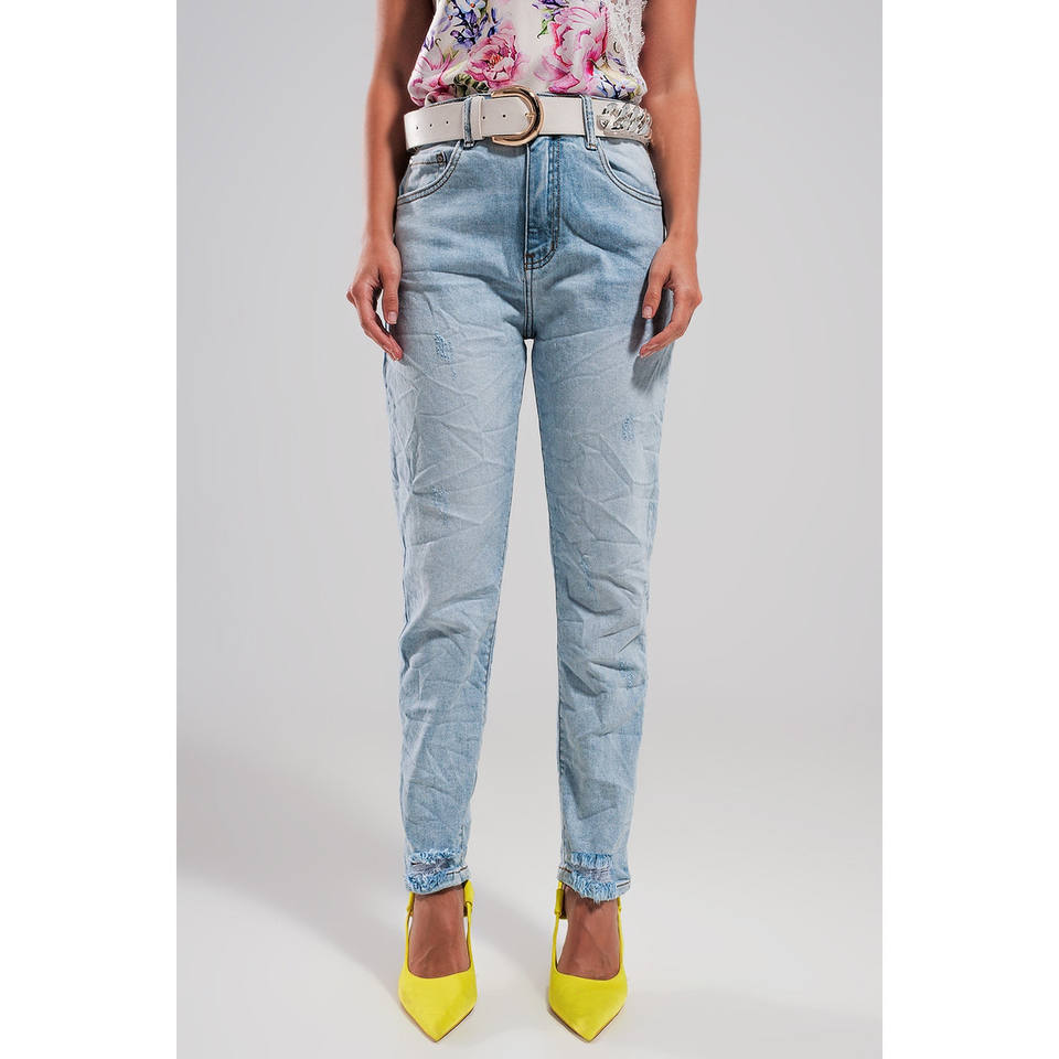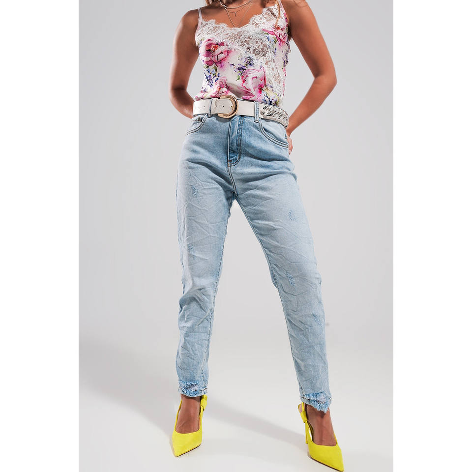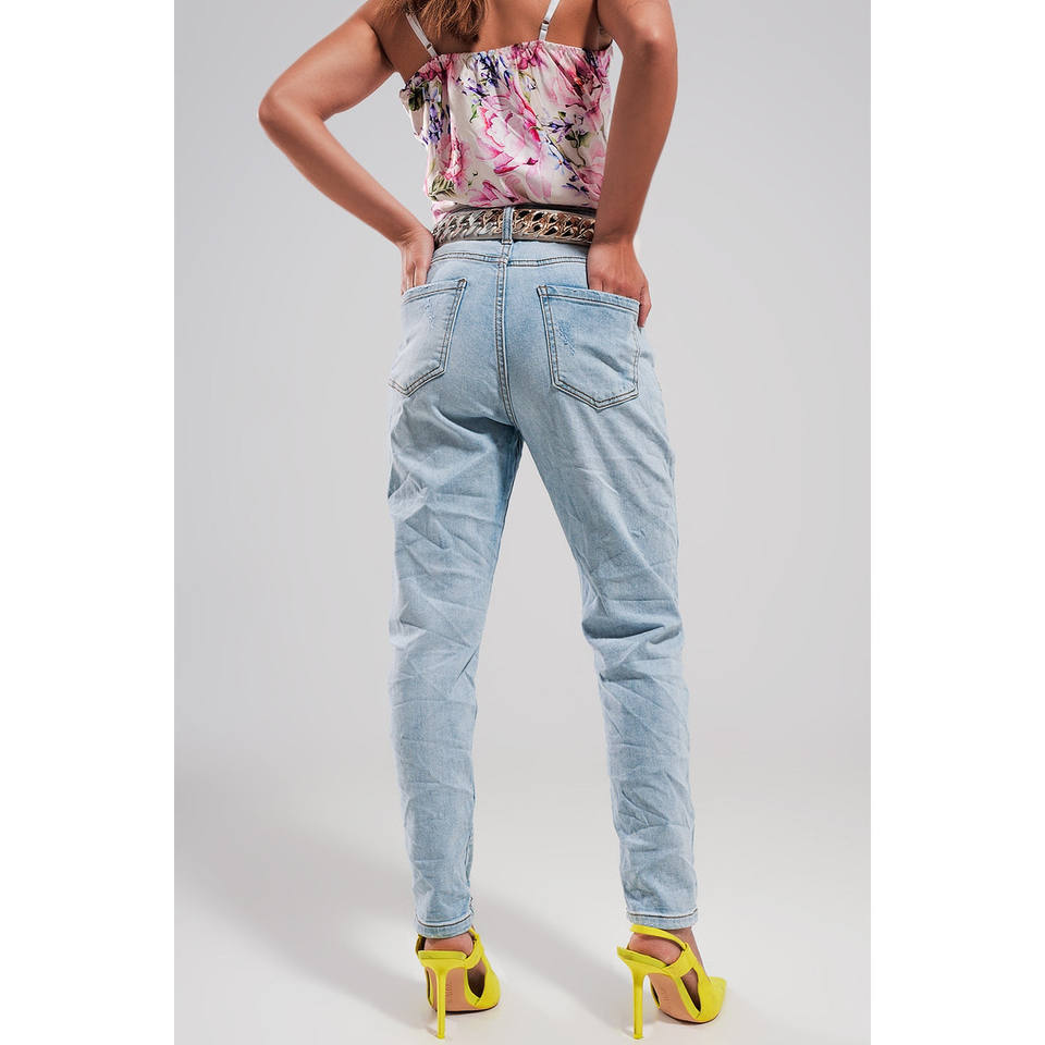 Jeans strappati a vita alta in blu chiaro