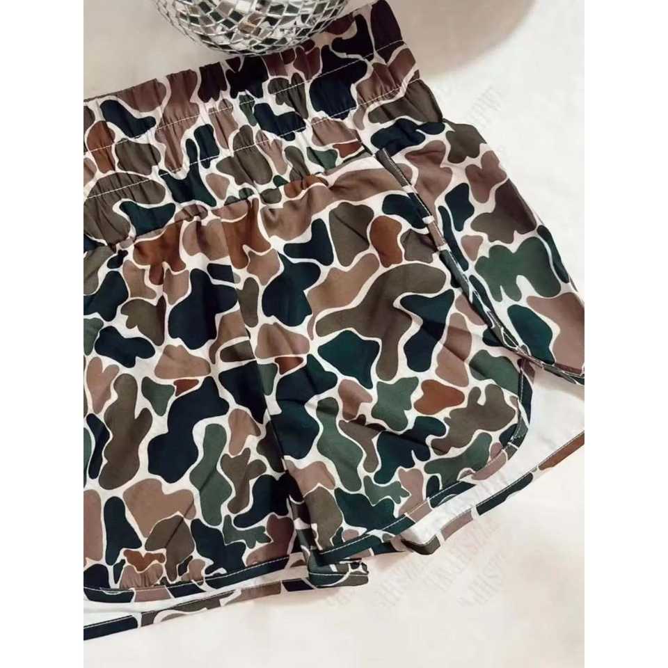 Shorts Estivi a Vita Alta con Stampa Camouflage e Materiale Traspirante in Spandex, Pantaloncini Casual con Decorazione Leopardata, Pantaloni Corti alla Moda