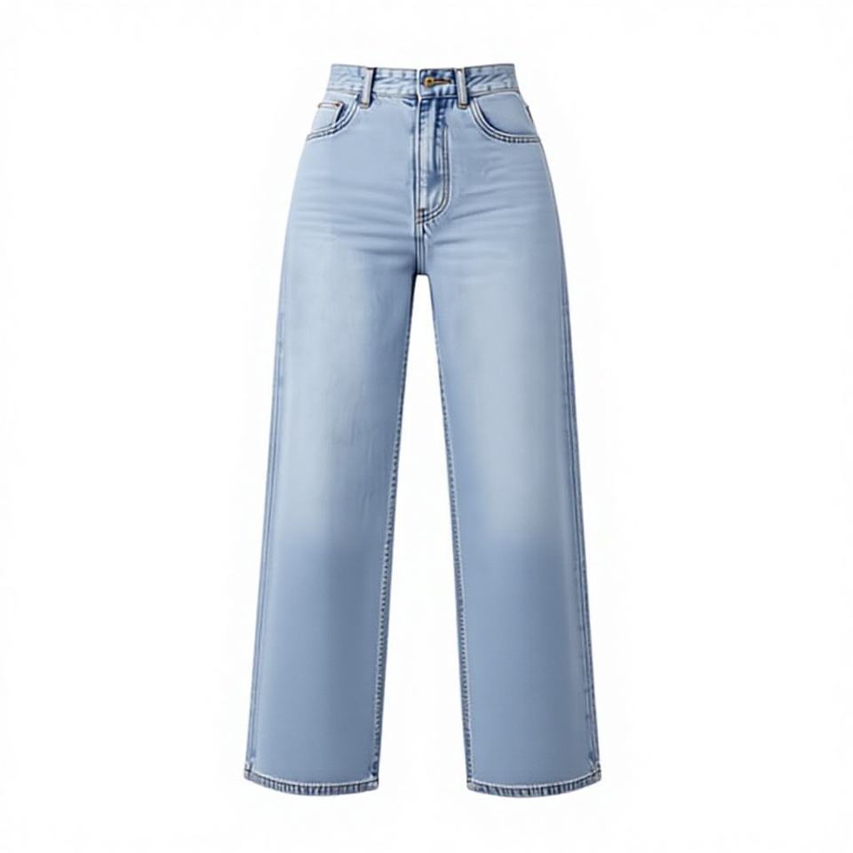 Jeans a Vita Alta e Gamba Larga per Donna, Denim Tinta Unita Lavaggio Chiaro, Lunghezza Intera, Casual, 100% Cotone, Vestibilità Comoda, Moda Primaverile