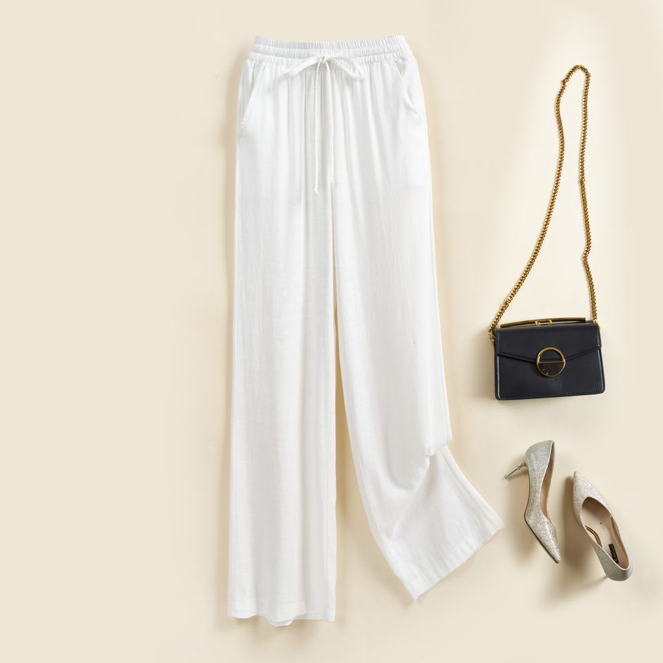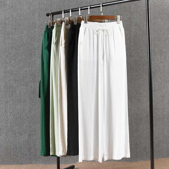 Pantaloni a vita alta a gamba larga pantaloni da donna casual in lino di cotone taglie forti pantaloni di lino bianchi