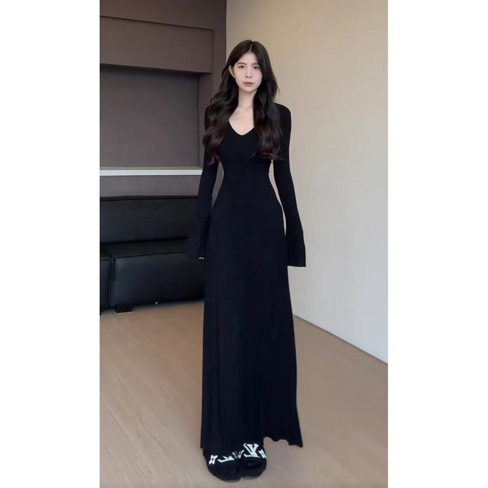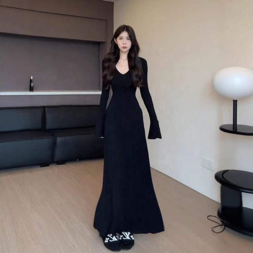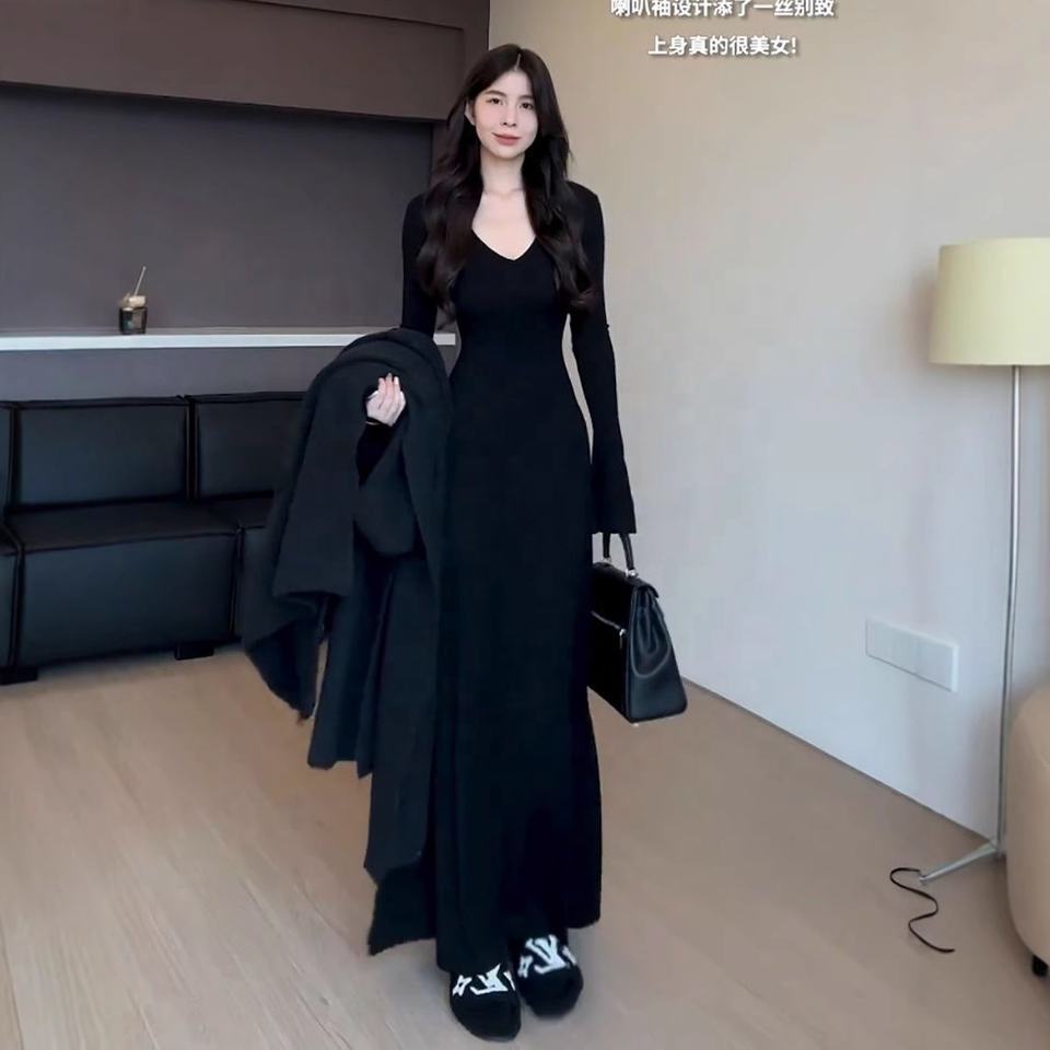 Abito Lungo da Donna di Alta Gamma, Nuovo Modello Autunno-Inverno, Elegante con Vita Stretta e Vestibilità Aderente