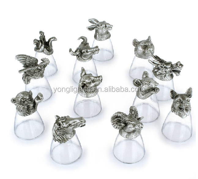 High-end Metal Animal Head with Glass Cup , Animal Shaped Vodka Shot Glasses