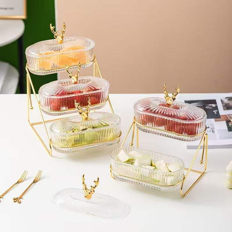 High-end New Multi-layer Acrylic Fruit Plate Cover Lid Household Candy Dried Fruit Food Simple Split Transparent Design plate