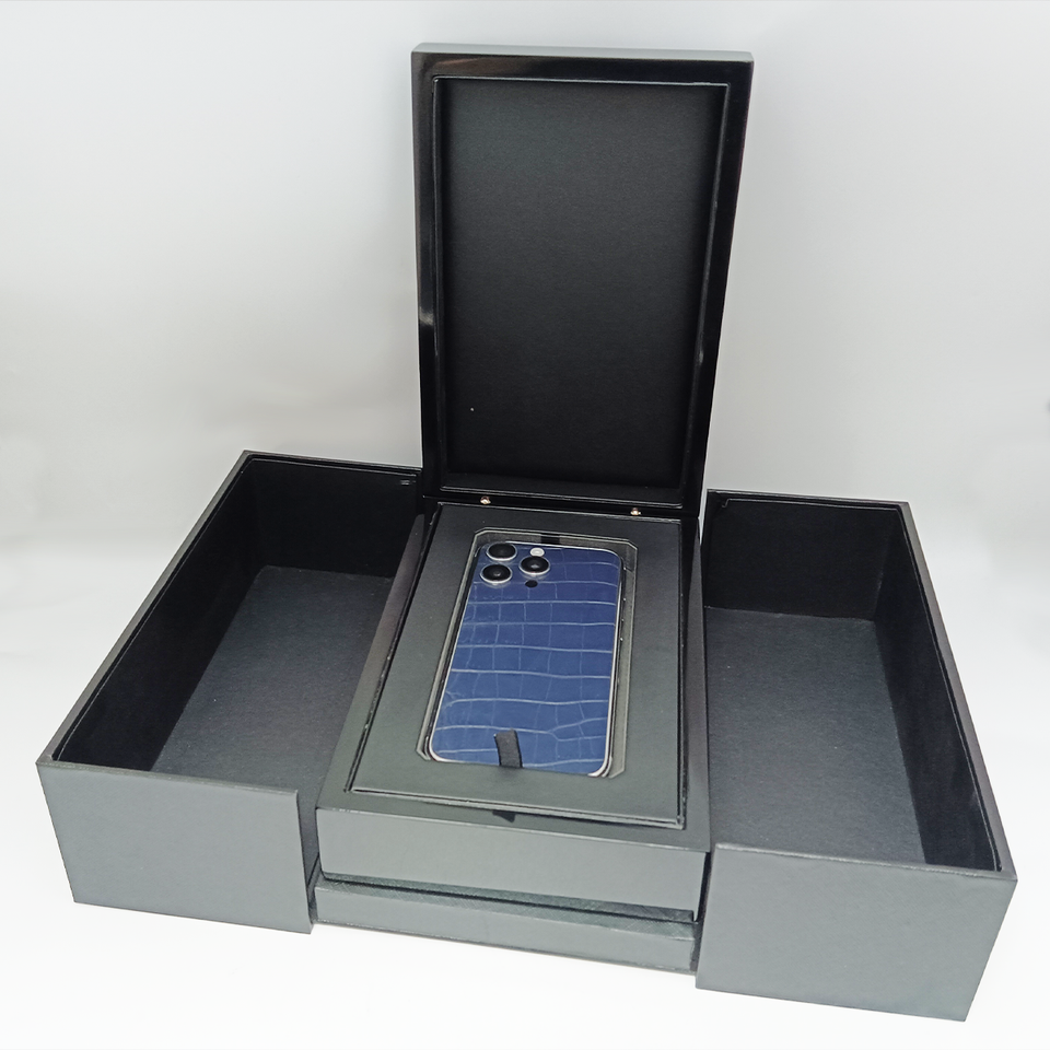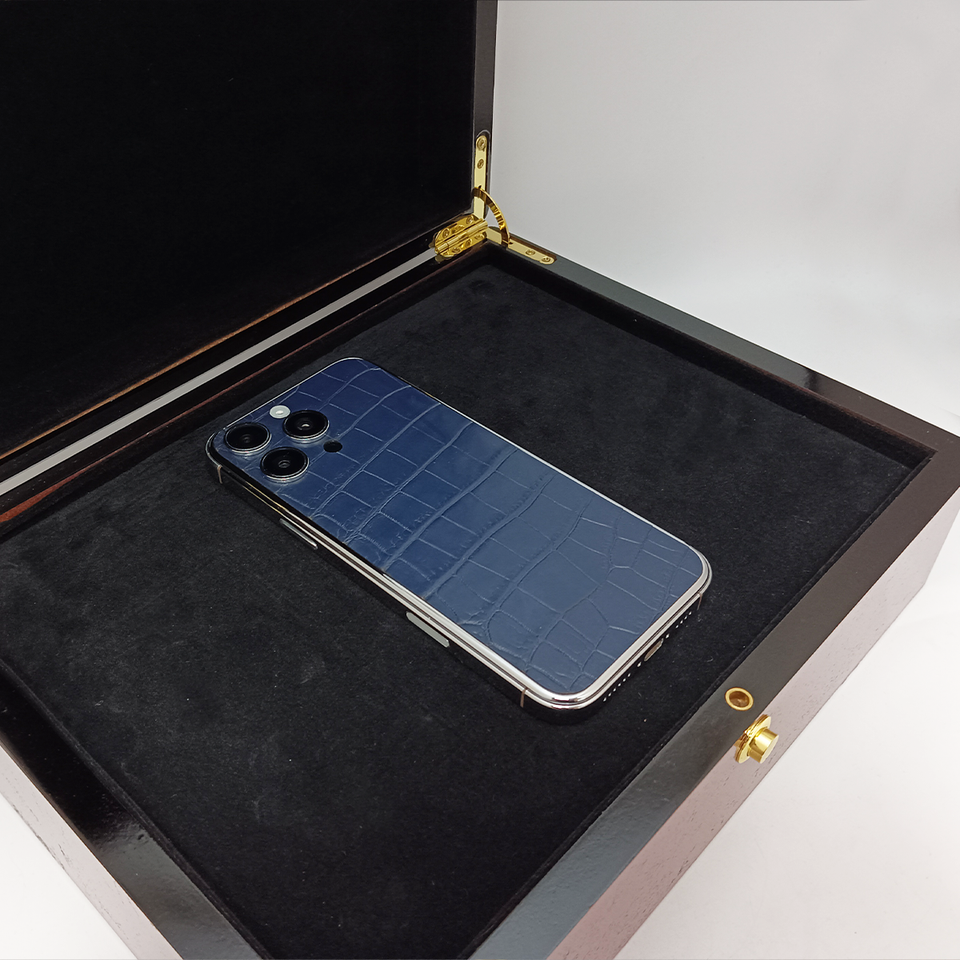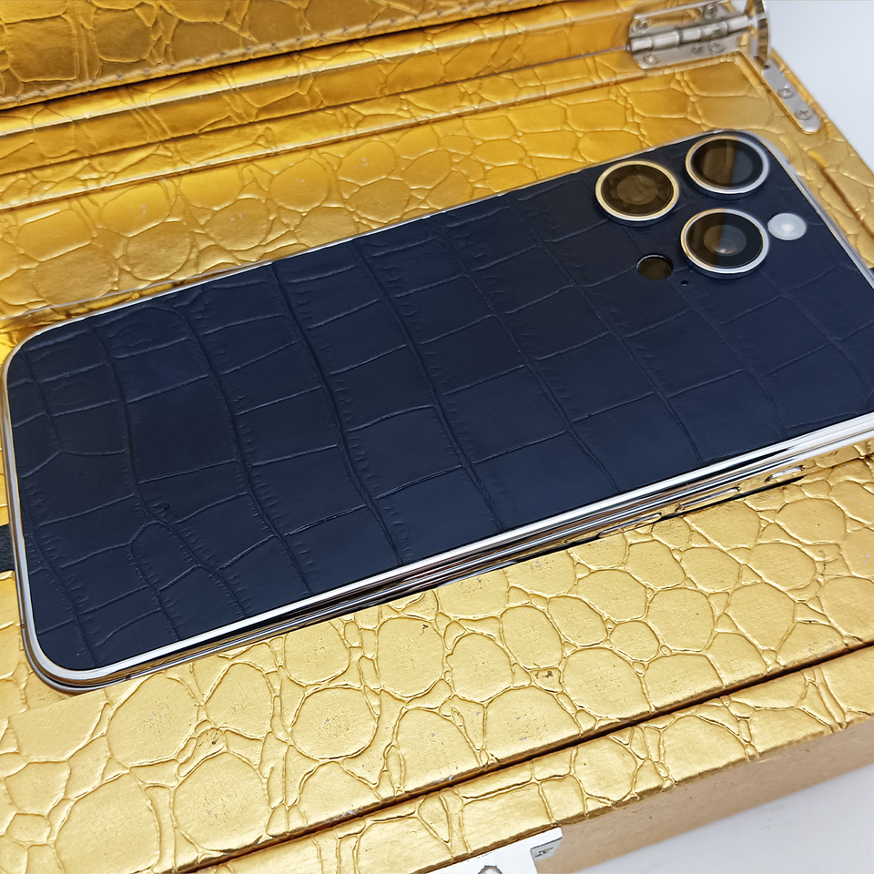 Smartphone di fascia alta con motivo a coccodrillo in pelle di vacchetta blu oro metallo custodia in platino lunetta personalizzato telefono cellulare di lusso