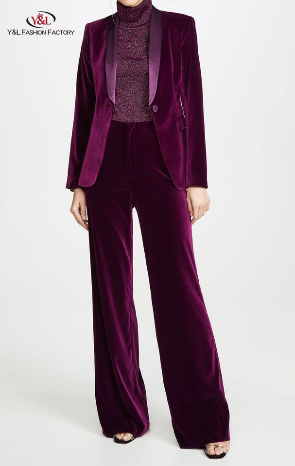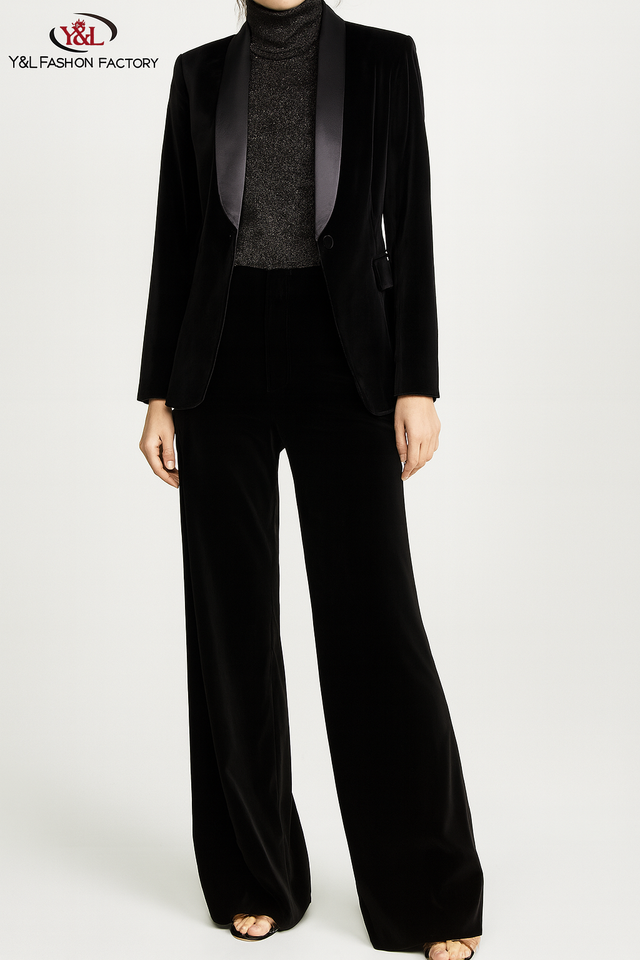 Completo da Donna Elegante e Raffinato in Velluto di Lusso, Set Giacca e Pantalone da Ufficio su Misura, Produttore di Abiti Personalizzati