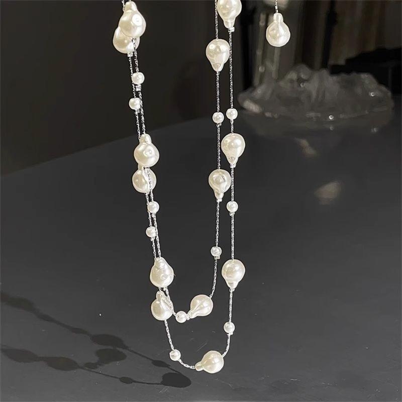 Collana di Perle Bianche di Alta Gamma, Stile Lungo, Molteplici Metodi di Indossamento, Design Elegante e di Nicchia, Catena per Collo di Lusso Leggero