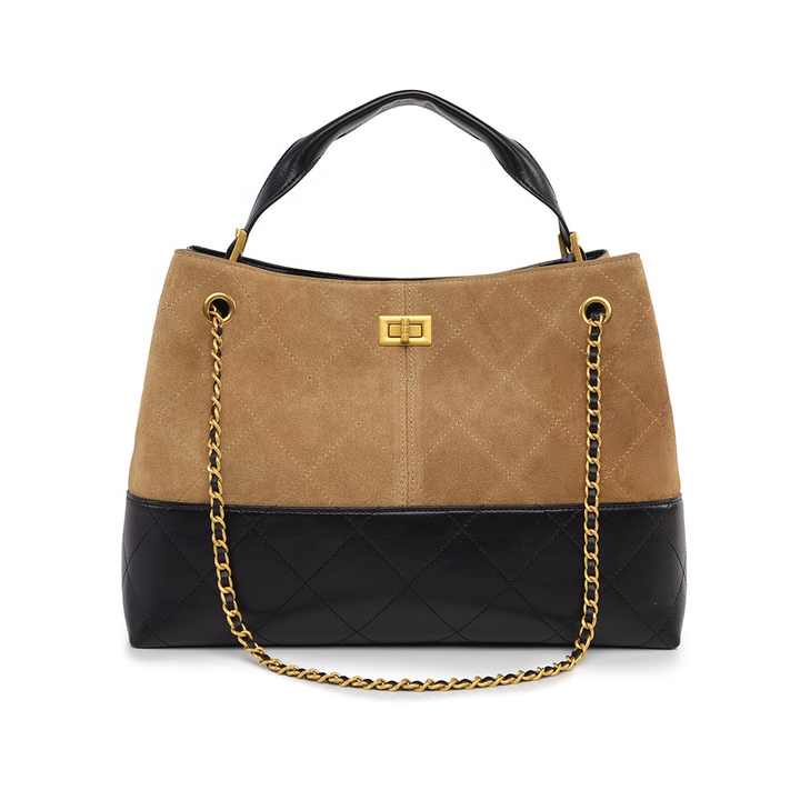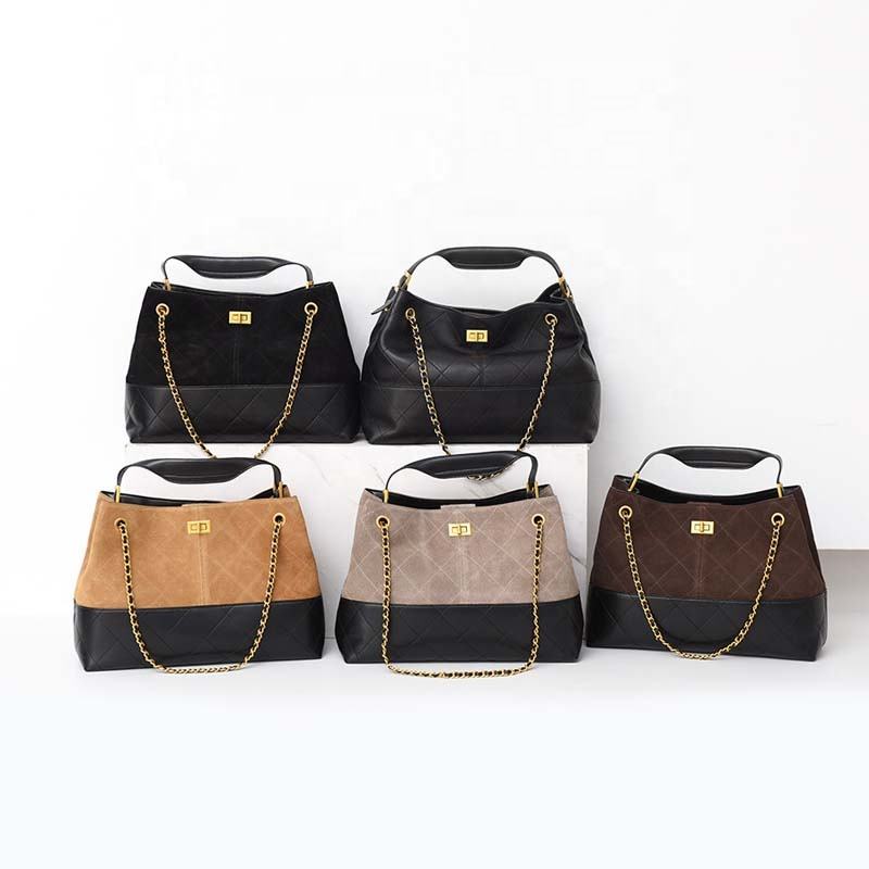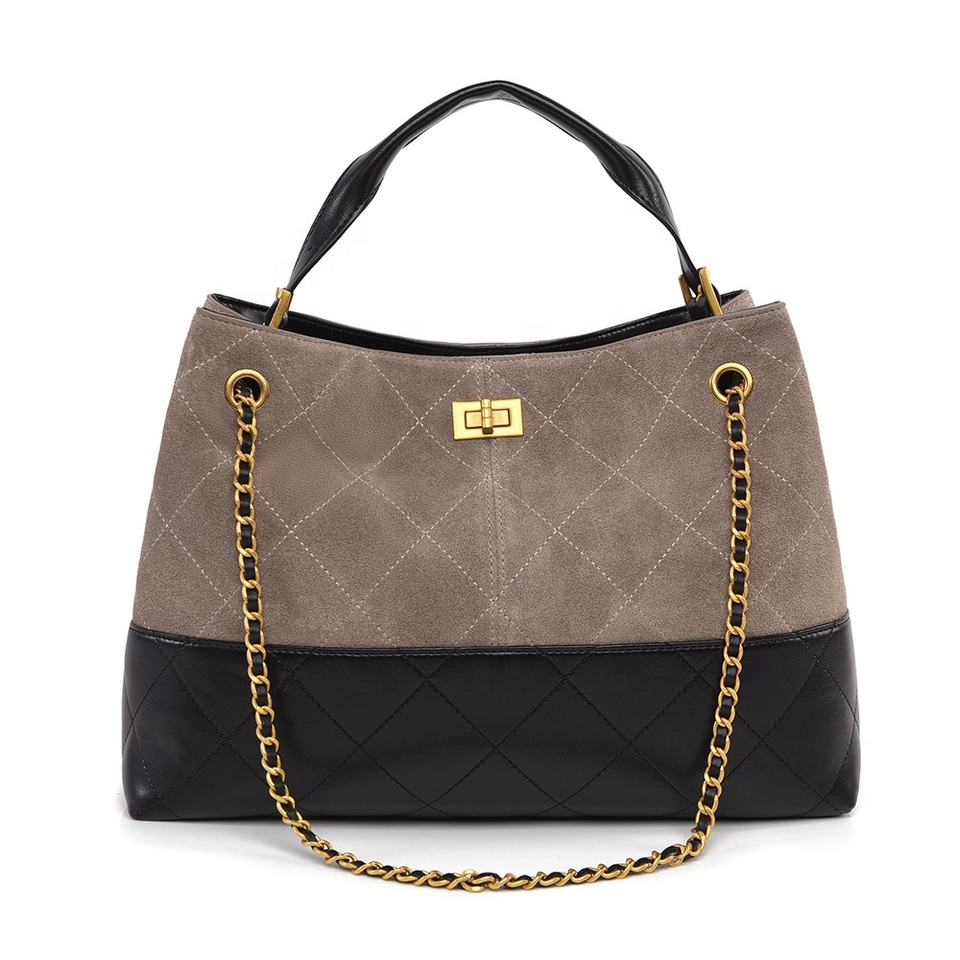 Borsa Tote in pelle scamosciata con catena a spalla alta da donna con fibbia singola di fascia alta